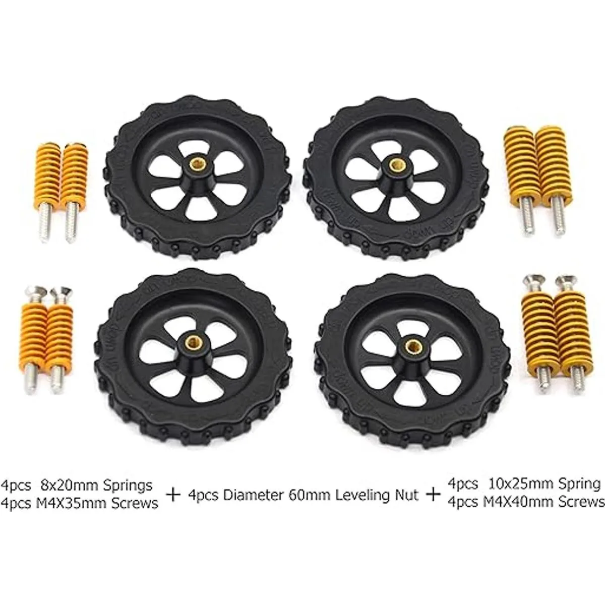 Befenybay 4 tuercas de nivelación de mano de 2.362 in de diámetro 4 muelles de cama caliente 4 tornillos M4 x 1.378 in para impresora 3D Creality CR10 CR10s Ender 3 Ender 3 Pro Ender 5