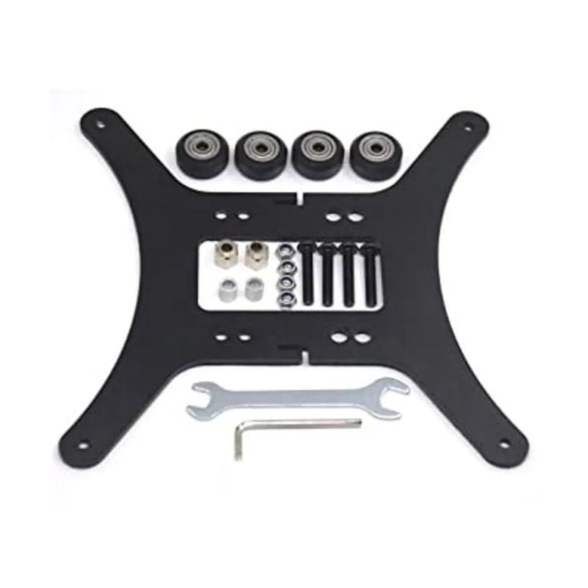 El paquete incluye: 1 placa de transporte en Y, 4 poleas POM, 2 columnas hexagonales excéntricas, 2 columnas de aislamiento, 4 tornillos M5 x 1.181 in, 4 tuercas M5, 1 llave de extremo abierto de 0.315 in a 0.394 in