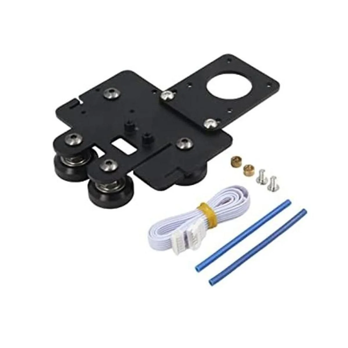 El paquete incluye: 1 kit de placa de soporte de extrusora directa con 4 poleas compatible con un solo engranaje y doble engranaje, 1 cable de extensión de motor de 23.6 in de longitud un extremo es hembra y el otro es macho
