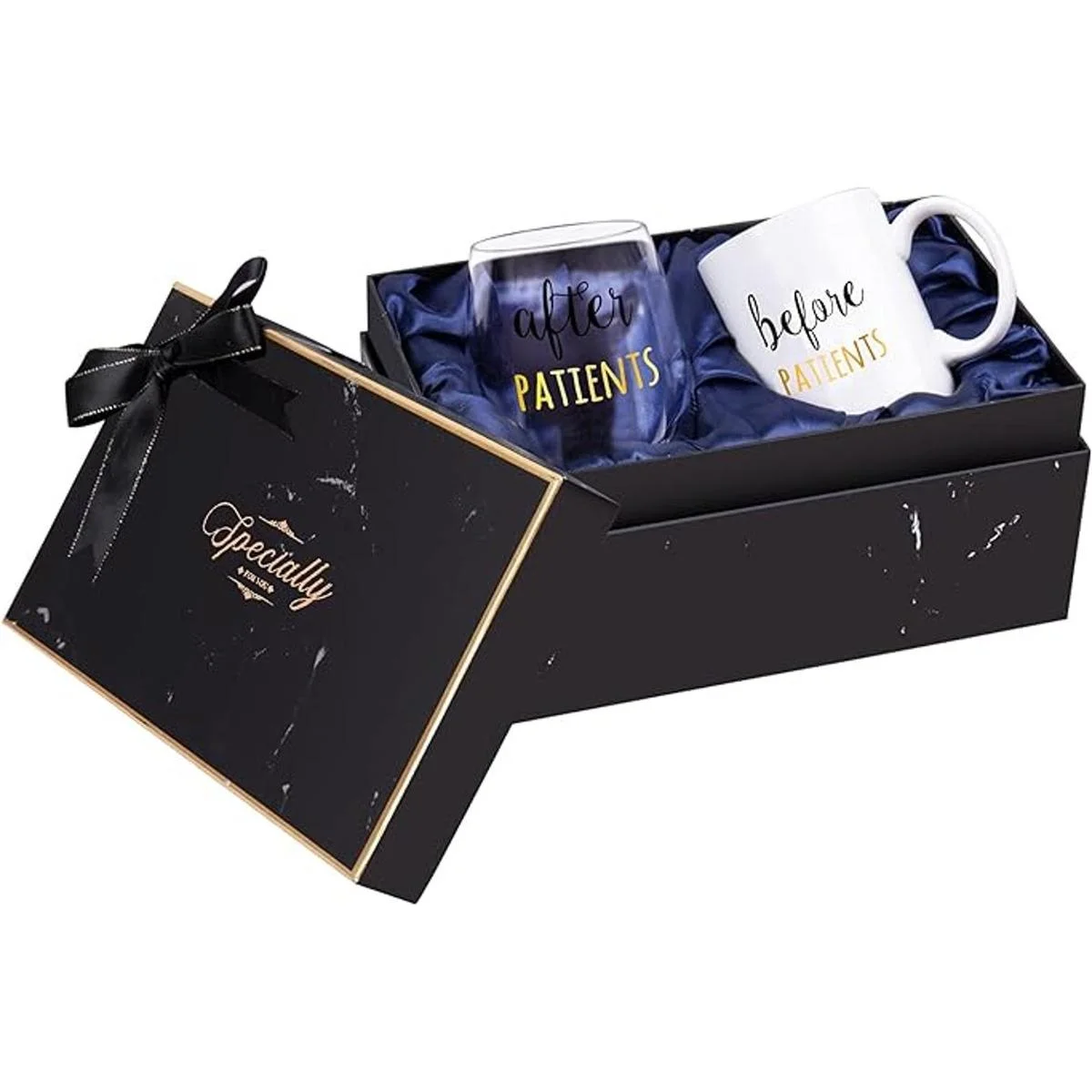 Todavía estás buscando regalos memorables Antes de los pacientes después de los pacientes, taza de café divertida de 11 onzas y copa de vino divertida sin tallo de 18 onzas es un regalo significativo para enfermeras, médicos, dentistas, médicos y otros trabajadores médicos. Hará que tu médico, enfermera amigos estén felices y agradecidos por tu corazón. Regalo de calentamiento.