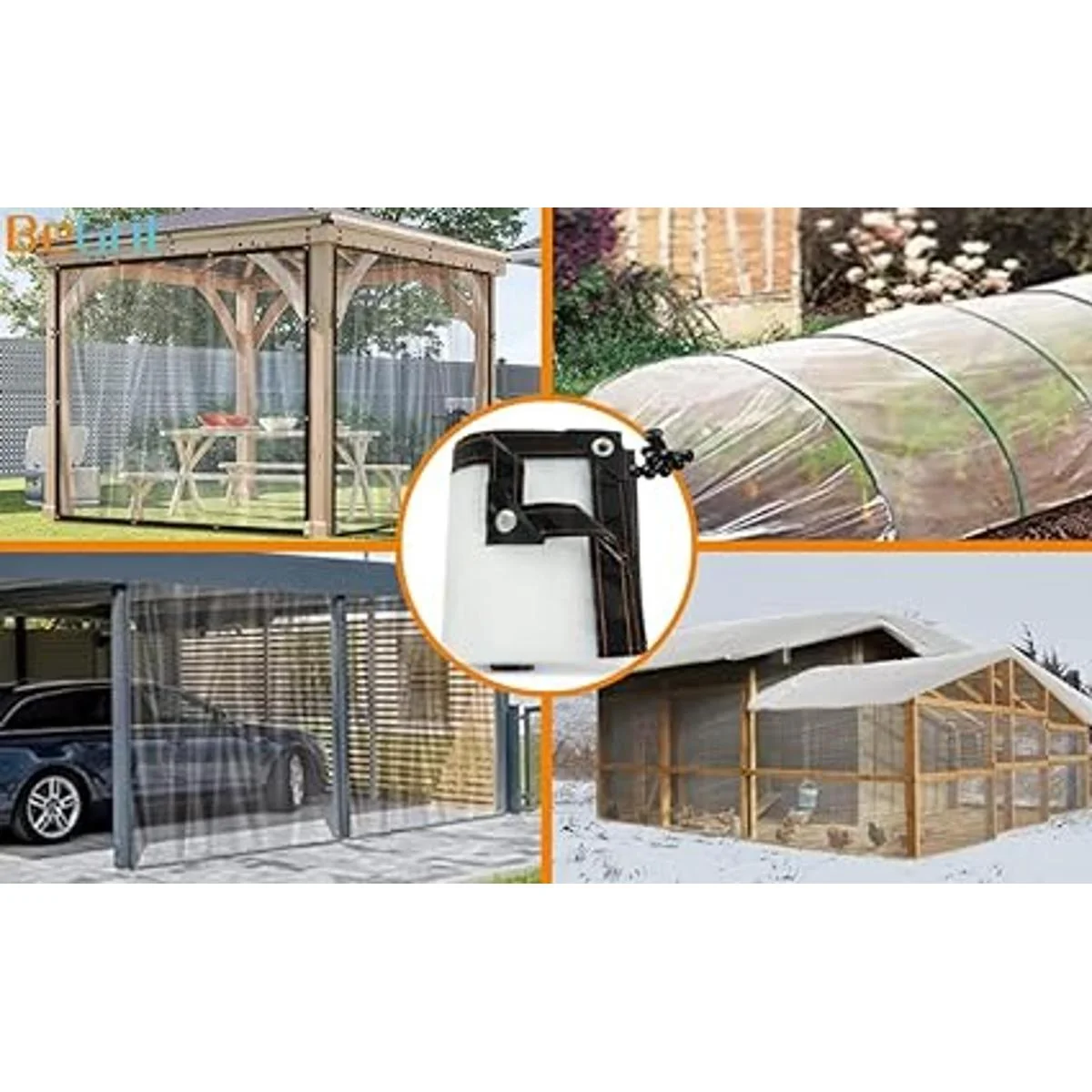 BeGrit Clear Tarps Lona impermeable resistente con ojales, a prueba de polvo, impermeable, resistente al viento, para invernadero, jardín, patio, con 14 cuerdas elásticas de bolas, 9.8 x 13 pies
