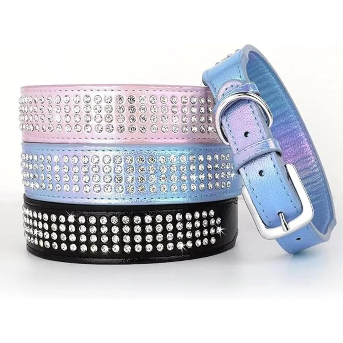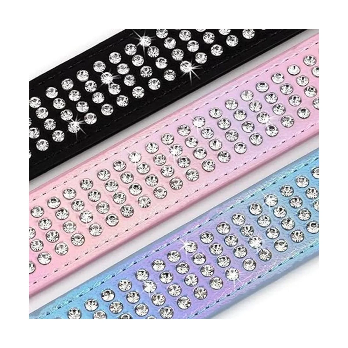 Material mejorado: el collar de cuero para perro está hecho de piel sintética colorida mejorada, que es más premium, elegante y fuerte, pero suave al mismo tiempo. El brillo colorido hace que el collar de perro de diamante sea brillante y atractivo.