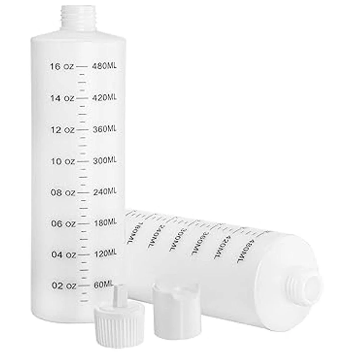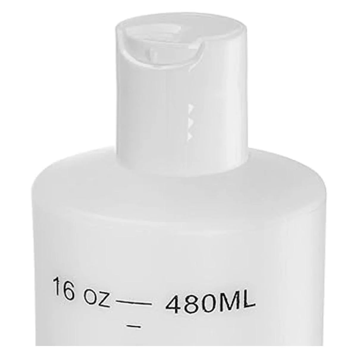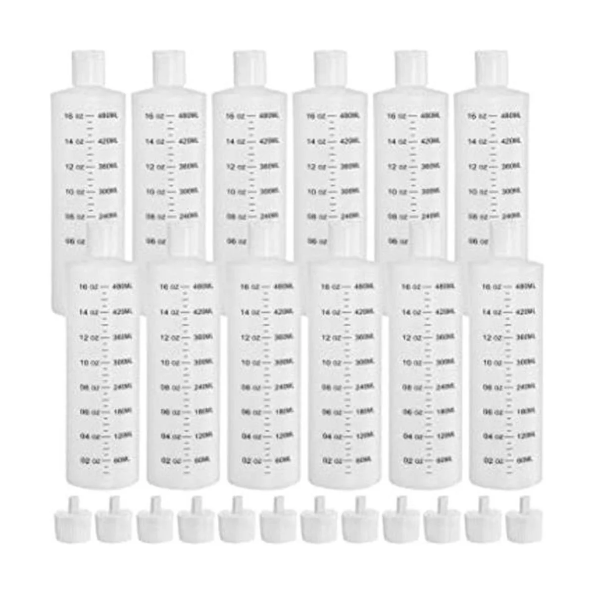 Juego de 12 botellas de plástico vacías rellenables de 16.0 fl oz con tapas de disco de presión y tapas de boquilla abatibles. Color translúcido natural.