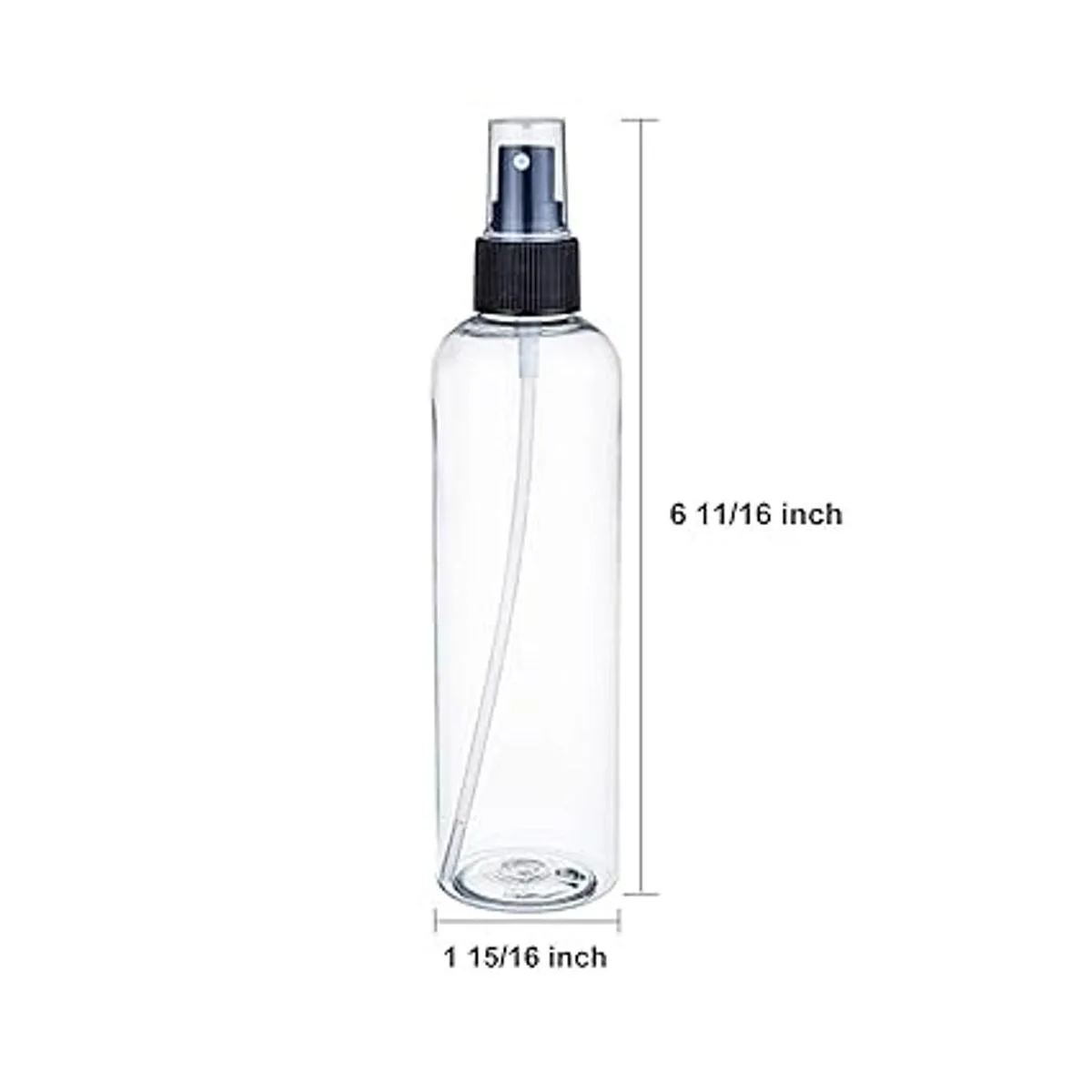 Juego de 16 botellas de spray vacías de plástico transparente. Capacidad: 8.5 fl oz. Dimensiones: altura total de 5.9 in, diámetro de la botella de 1.2 in.