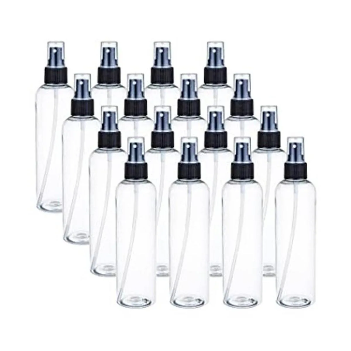 Bekith Paquete de 16 botellas de plástico de 8 onzas, botellas de rociador de niebla fina vacías transparentes con tapa de spray para aceites esenciales, viajes, perfumes