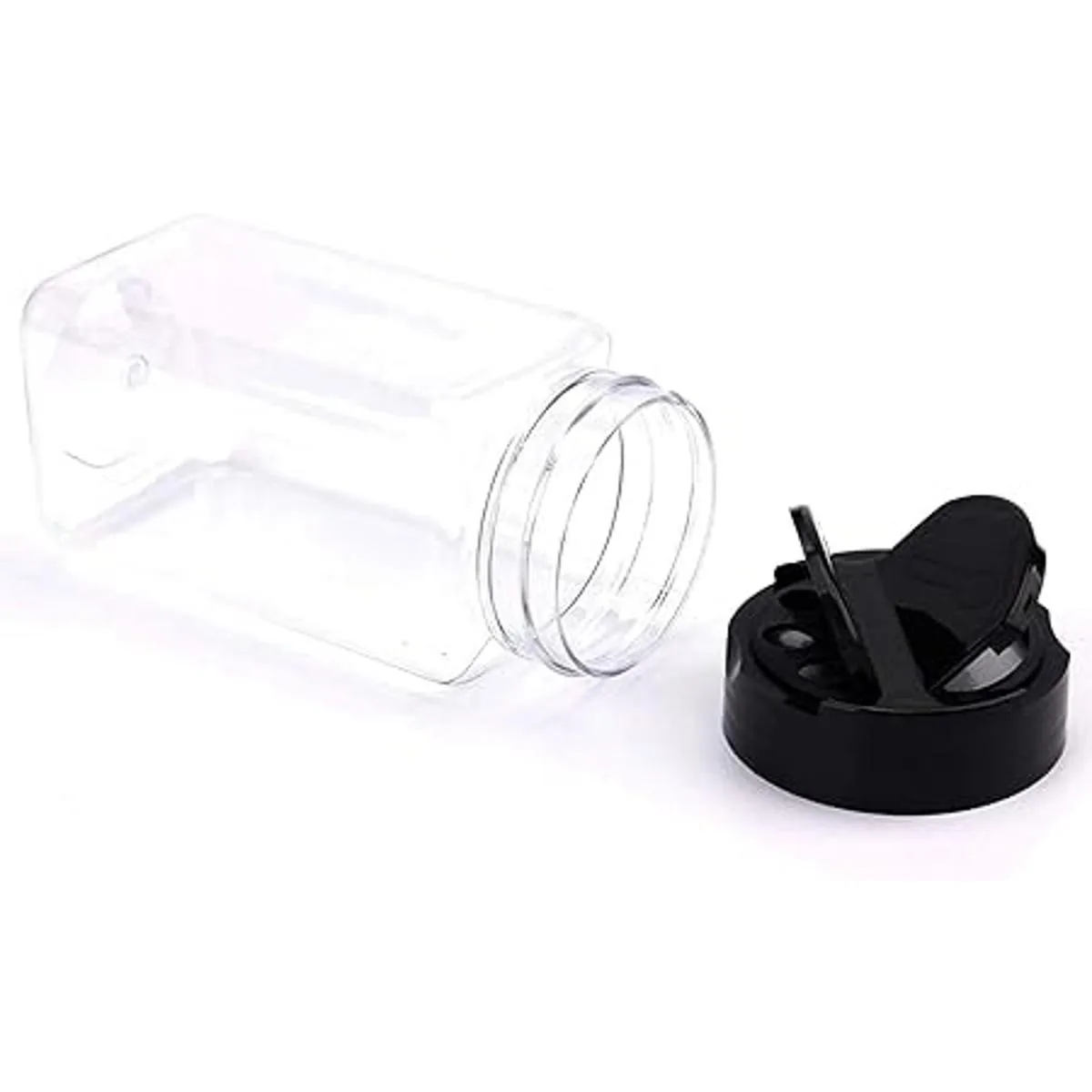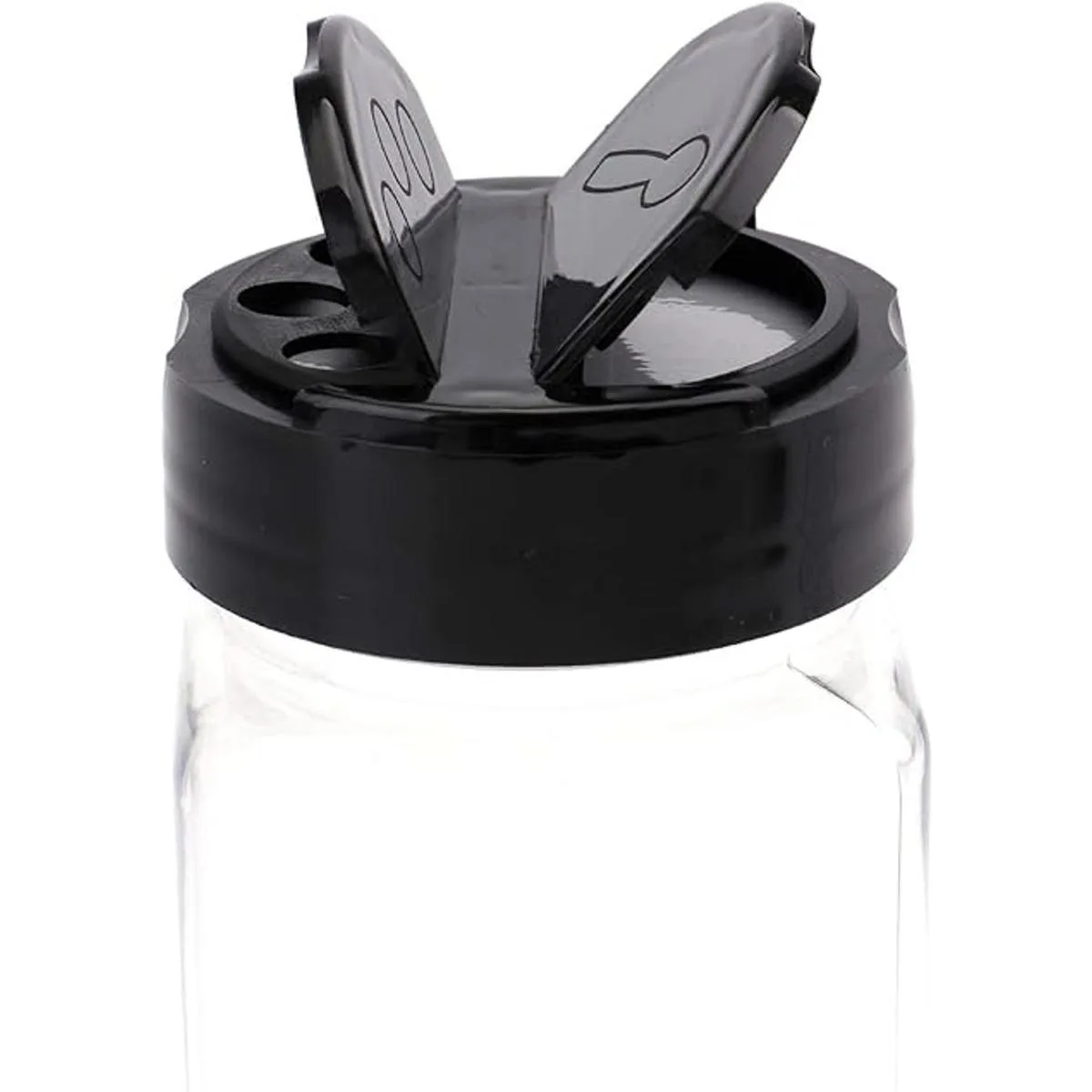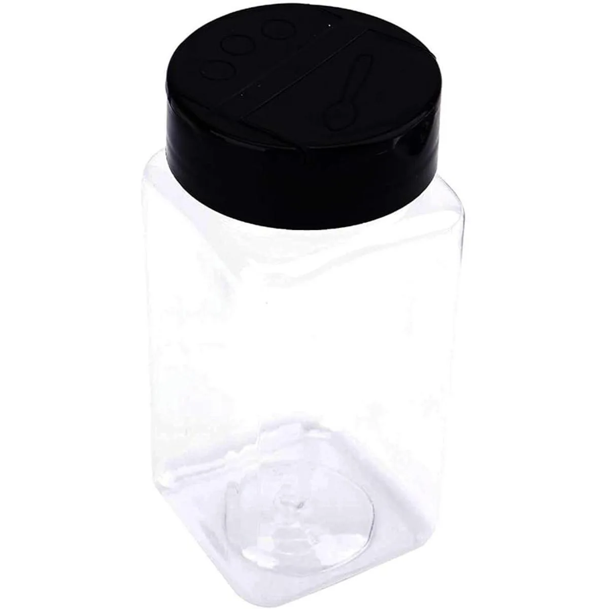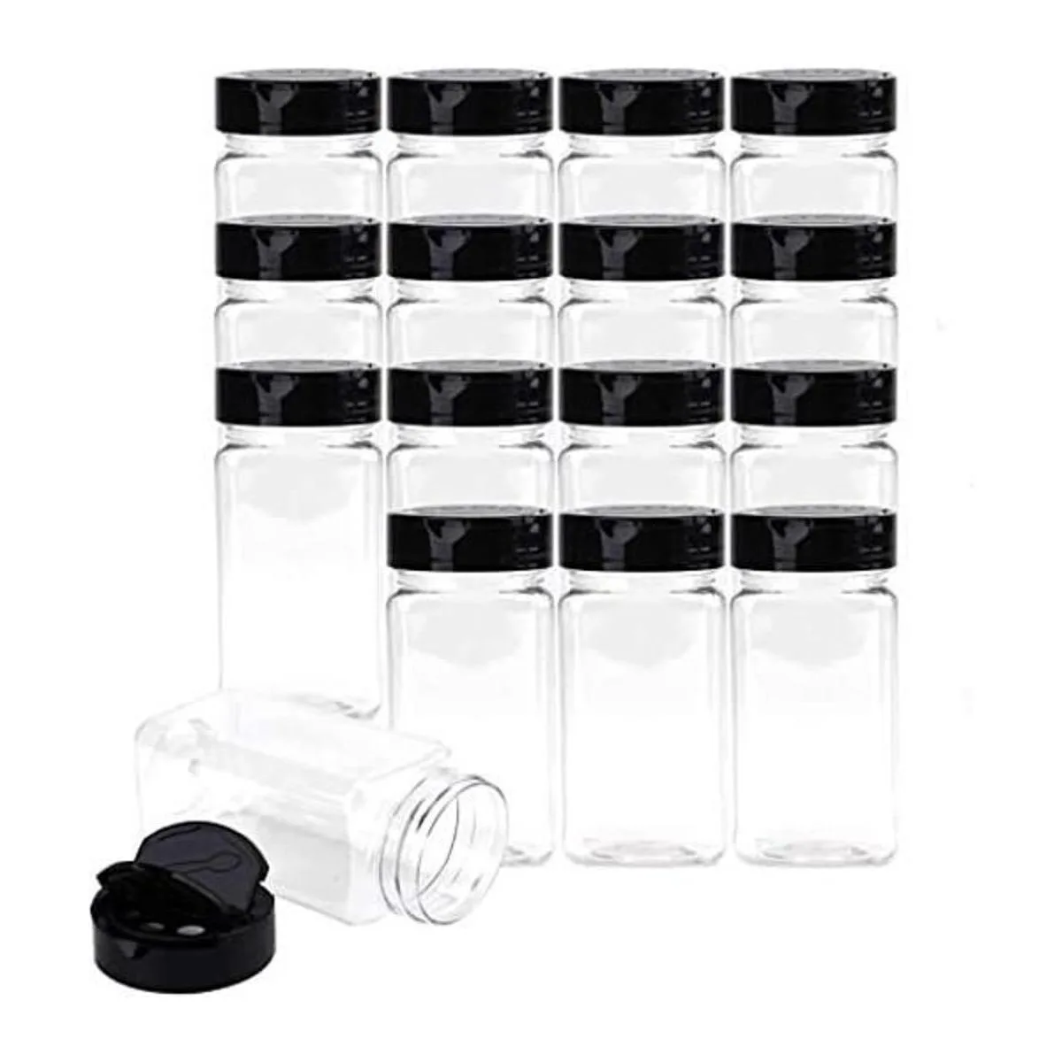 Bekith Paquete de 16 botellas de plástico para especias de 9 onzas con tapa negra, perfectas para almacenar especias, hierbas y polvos, Transparente, 9 Ounce