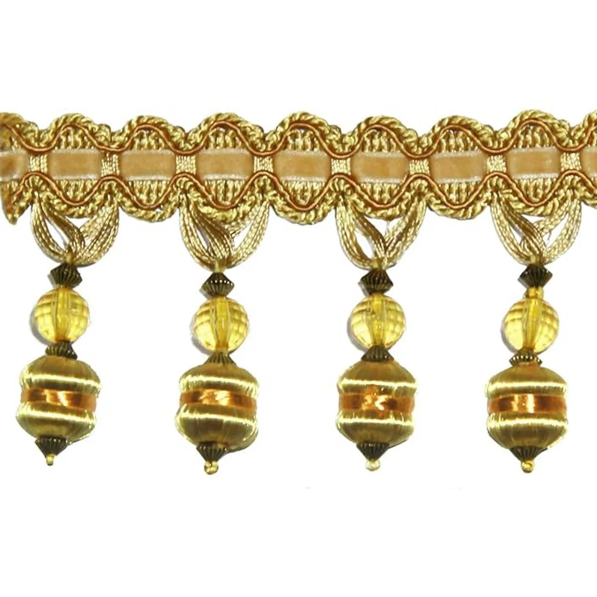BEL AVENIR Fringe Trim 6.8 yardas 3.0 in cuentas de cristal de lujo hecho a mano colgar bolas de coser manualidades DIY manualidades decoración adornos dorado