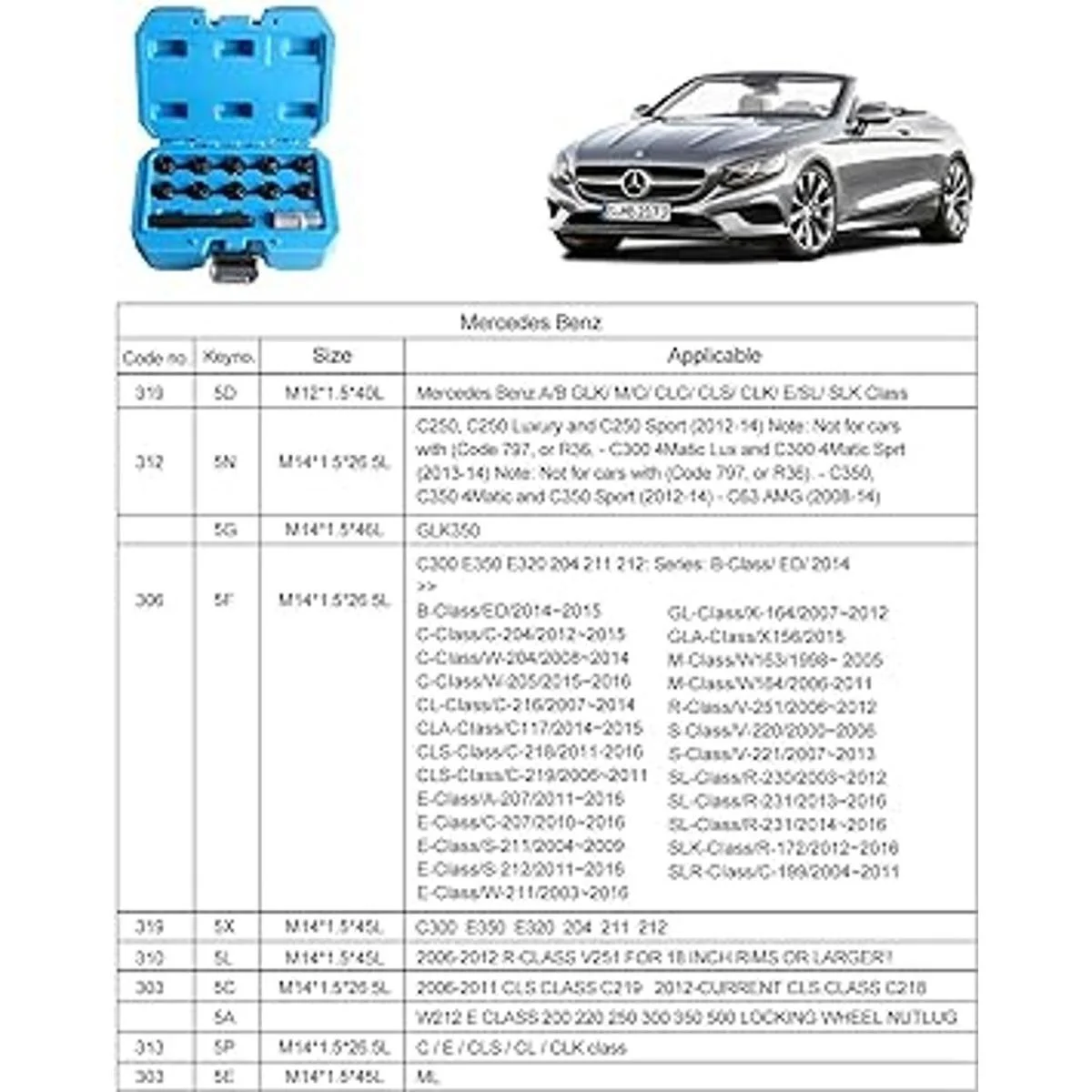 BELEY Juego de 12 tuercas de bloqueo de rueda para Mercedes Benz, tuercas antirrobo, para instalación y extracción de tuercas 12 unidades