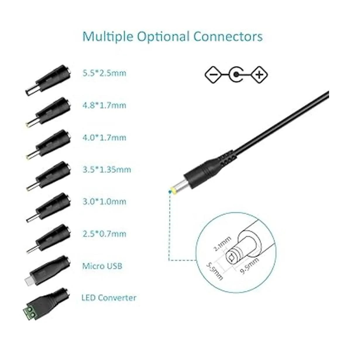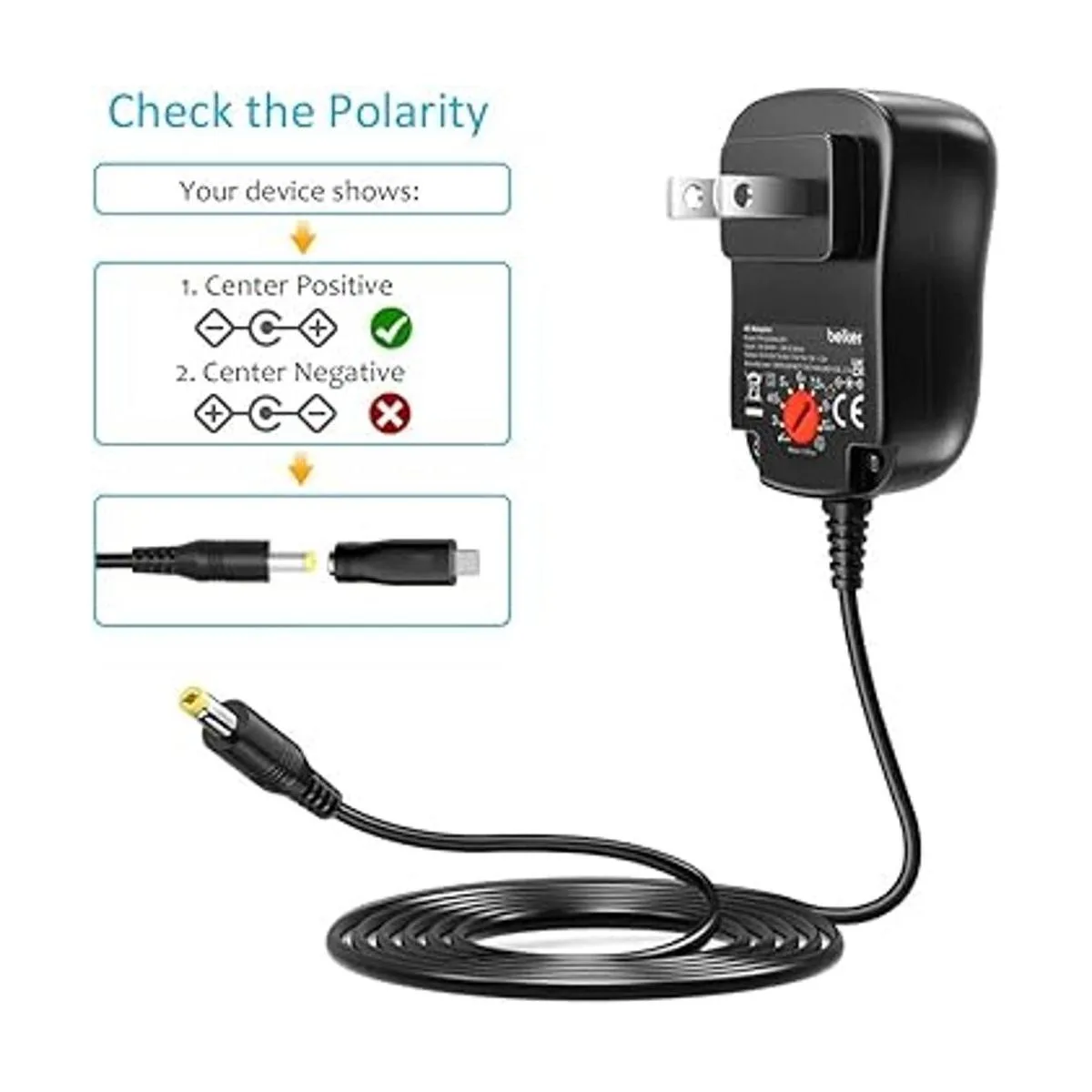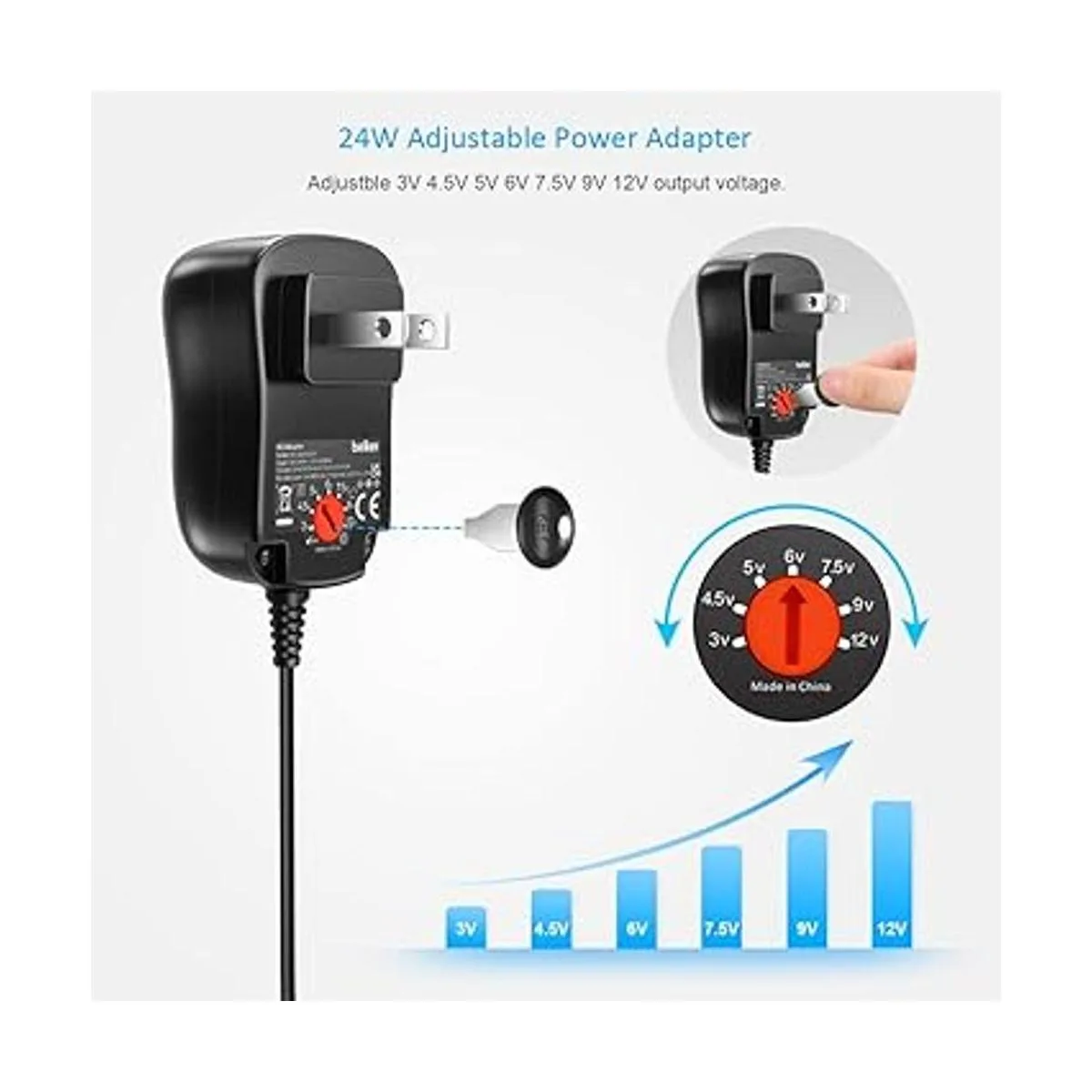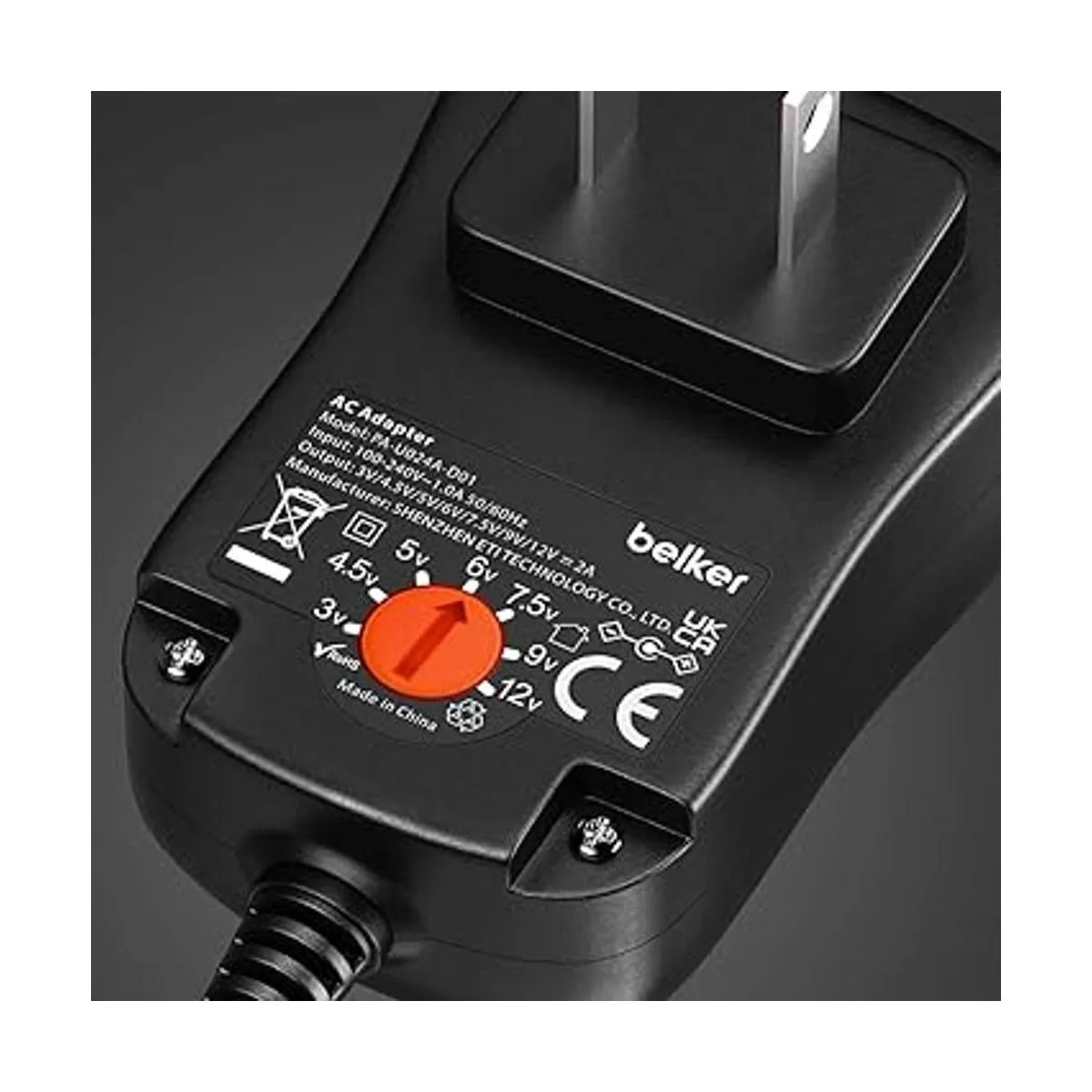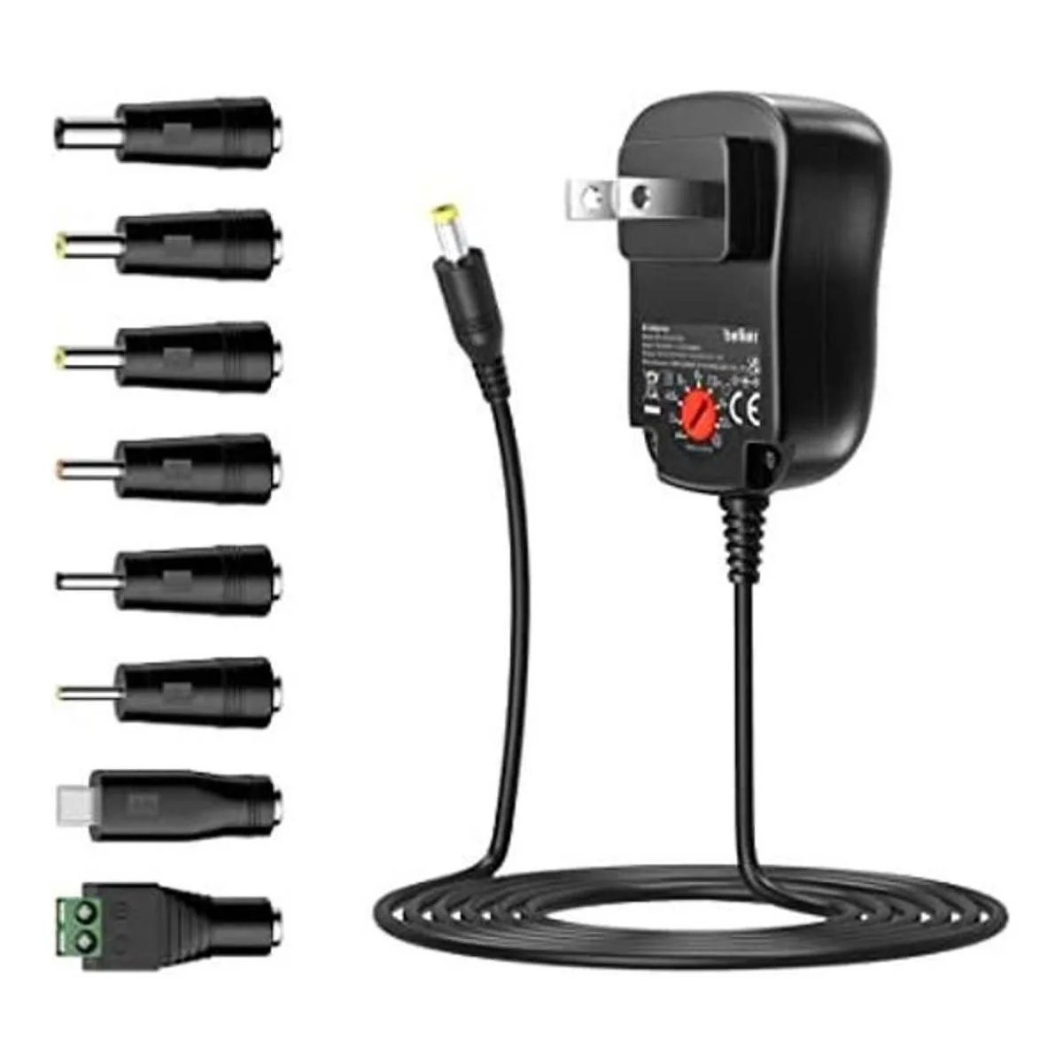 Belker Adaptador universal de CACC, fuente de alimentación de conmutación regulada multivoltaje con 9 enchufes adaptadores seleccionables para 3 V, 4.5 V, 5 V, 6 V, 7.5 V, 9 V, 12 V, electrónica doméstica 2 amperios máximo