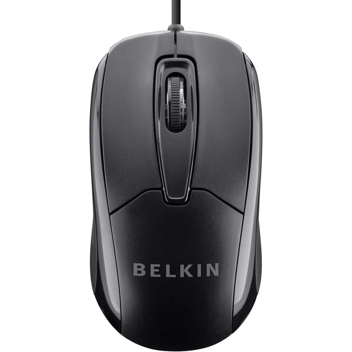Belkin F5M010qBLK Ratón óptico USB con cable de 5 pies, compatible con PC, Macs, computadoras de escritorio y portátiles, color negro