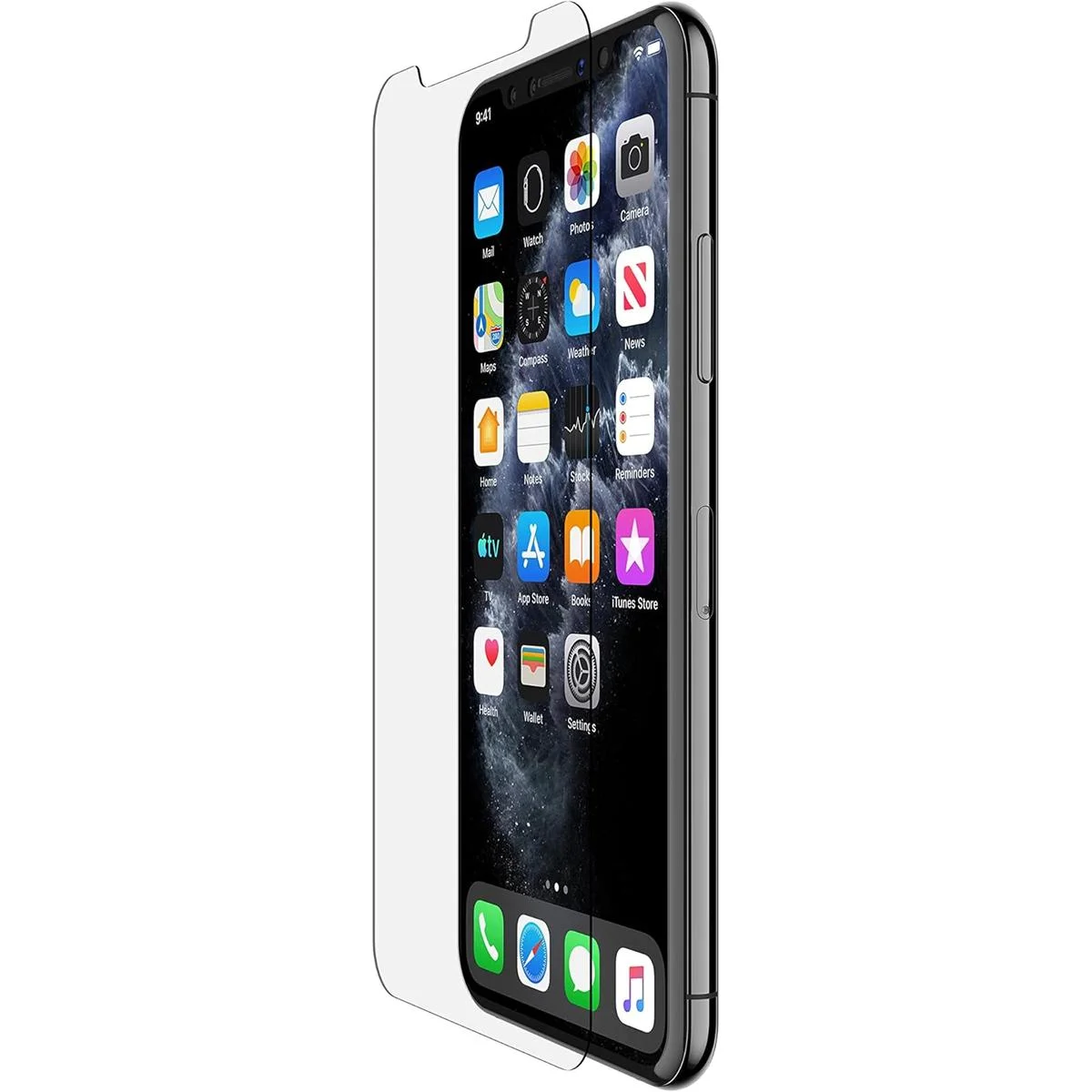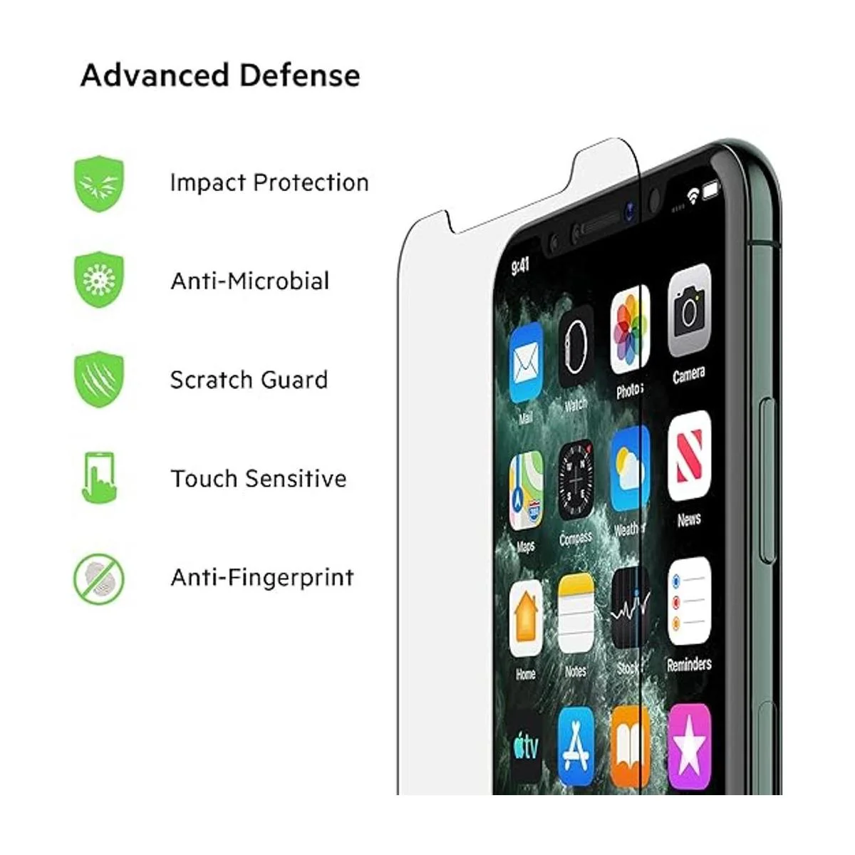 Belkin Protector de pantalla para Apple iPhone 11 Pro, iPhone XS o iPhone X con revestimiento tratado antimicrobiano y bandeja de alineación fácil incluida, para una instalación simple, sin burbujas, vidrio templado ScreenForce