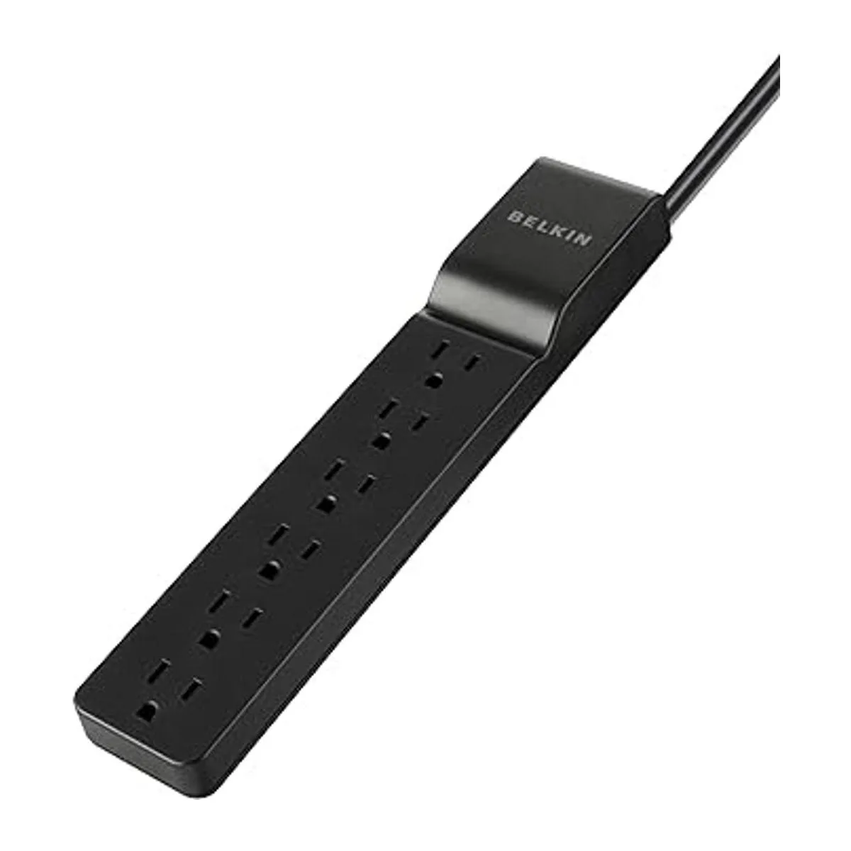 MULTIOUTLET SURGE PROTECTOR POWER STRIP: Turn 1 outlet into 6 surgeprotected AC outlets with this compact power extension cord. It supplies power to multiple computing devices and peripherals, from iPhones, tablets and smartphones to laptops and projectors. Cleaner workstation for a clearer mind.