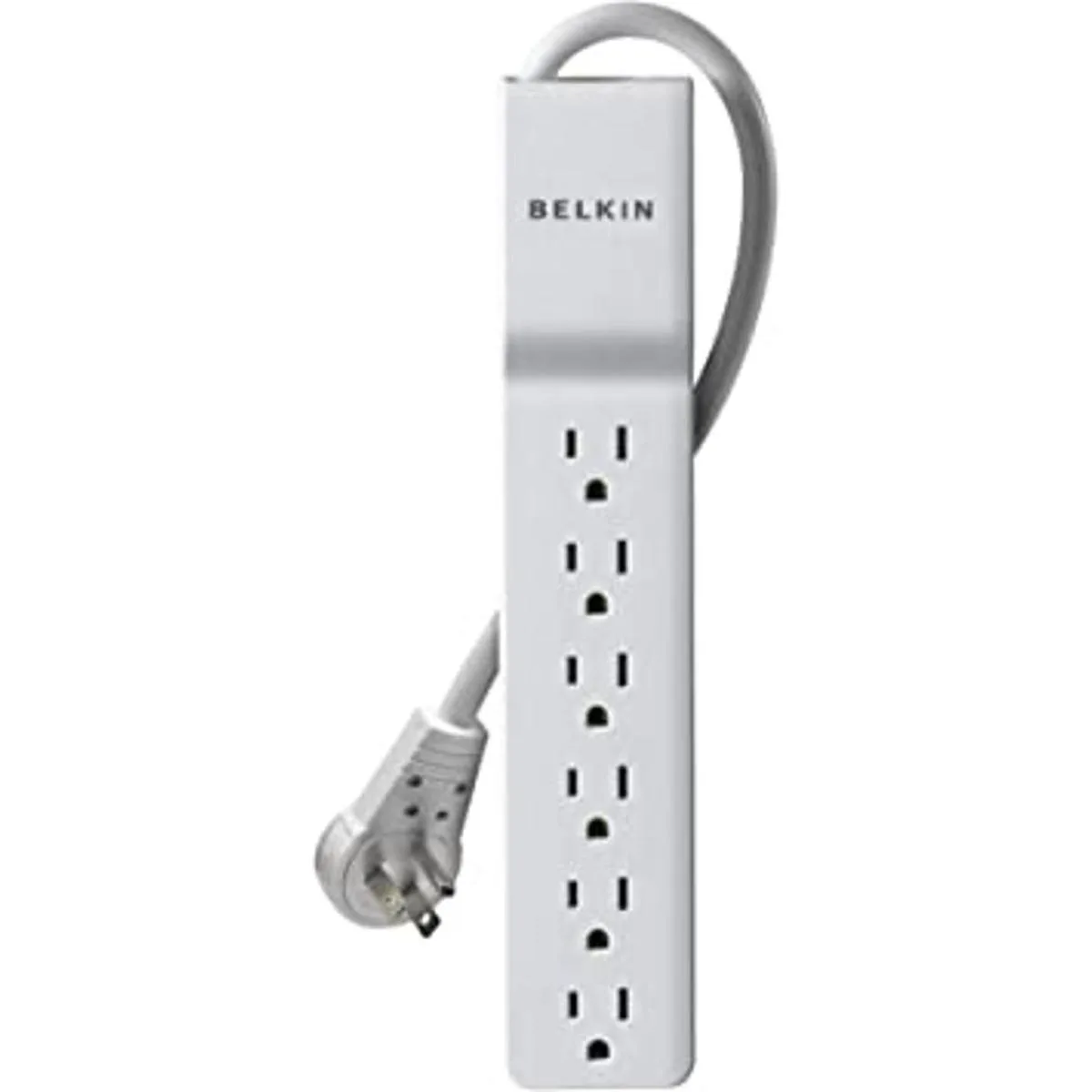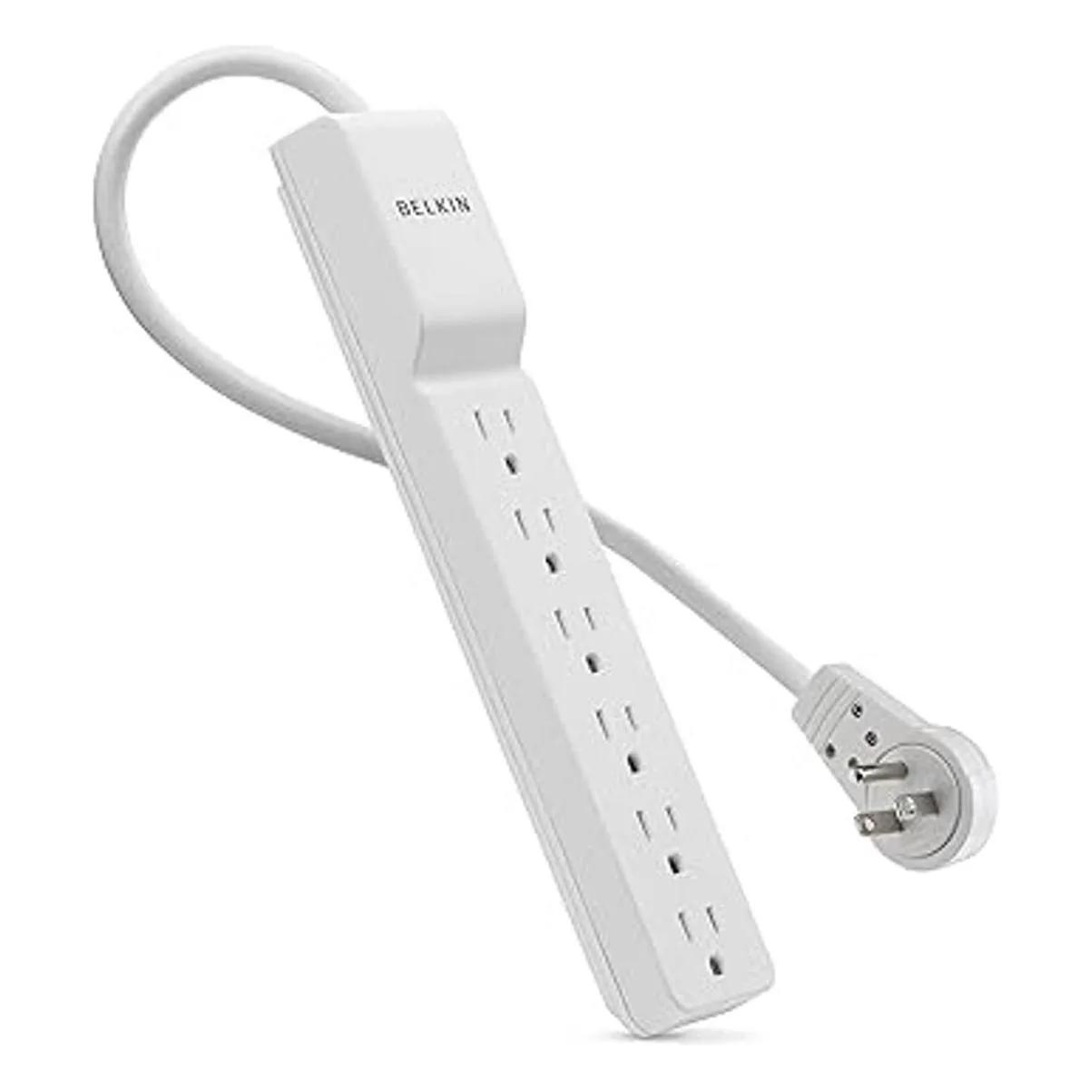 Belkin SlimLine Enchufe múltiple para 6 tomas de corriente con protección de sobrecargas cable de 6 pies y enchufe giratorio, 720 julios, color blanco