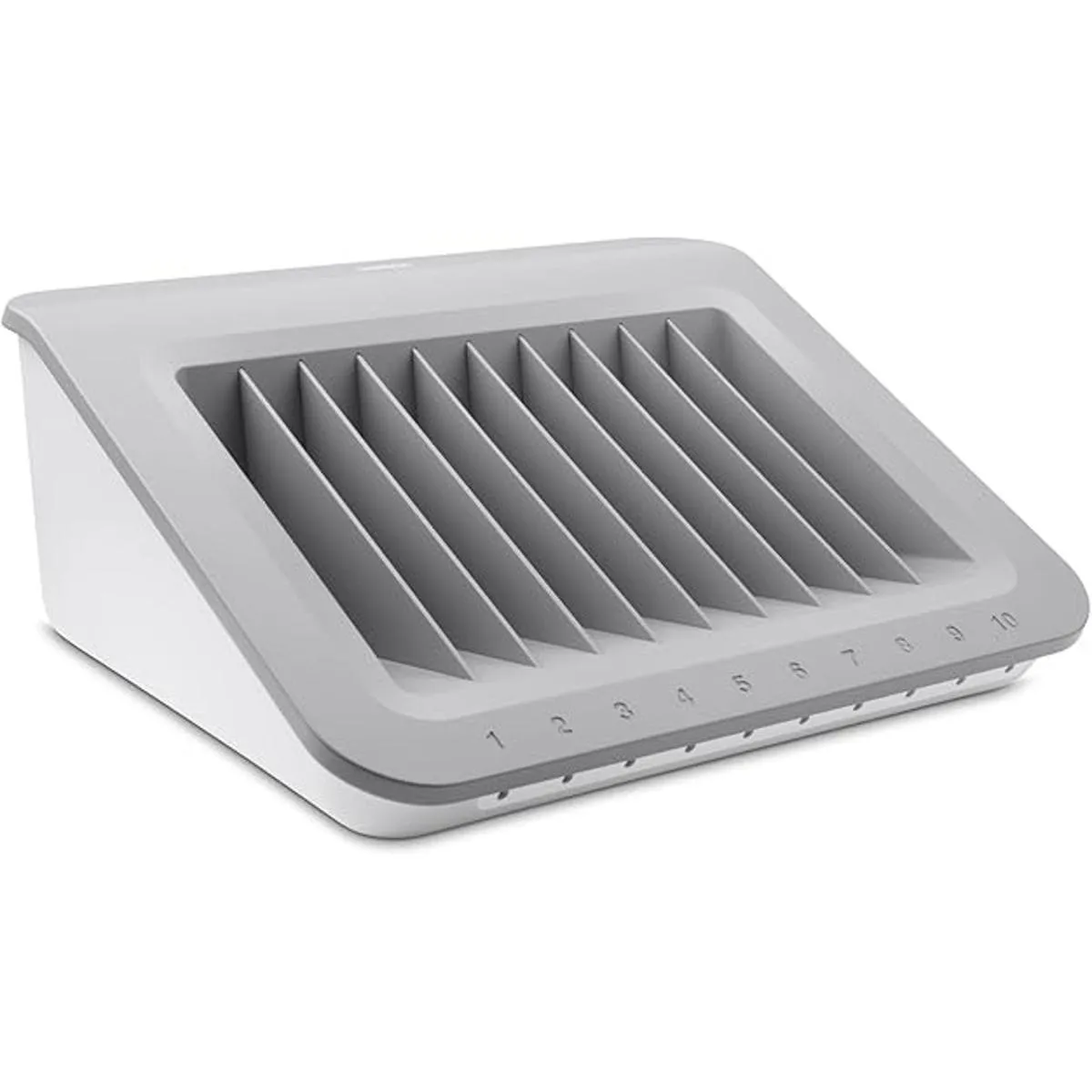 Almacena y carga hasta 10 dispositivos en ángulos de fácil acceso, se adapta a la mayoría de fundas de hasta 1.2 in de grosor