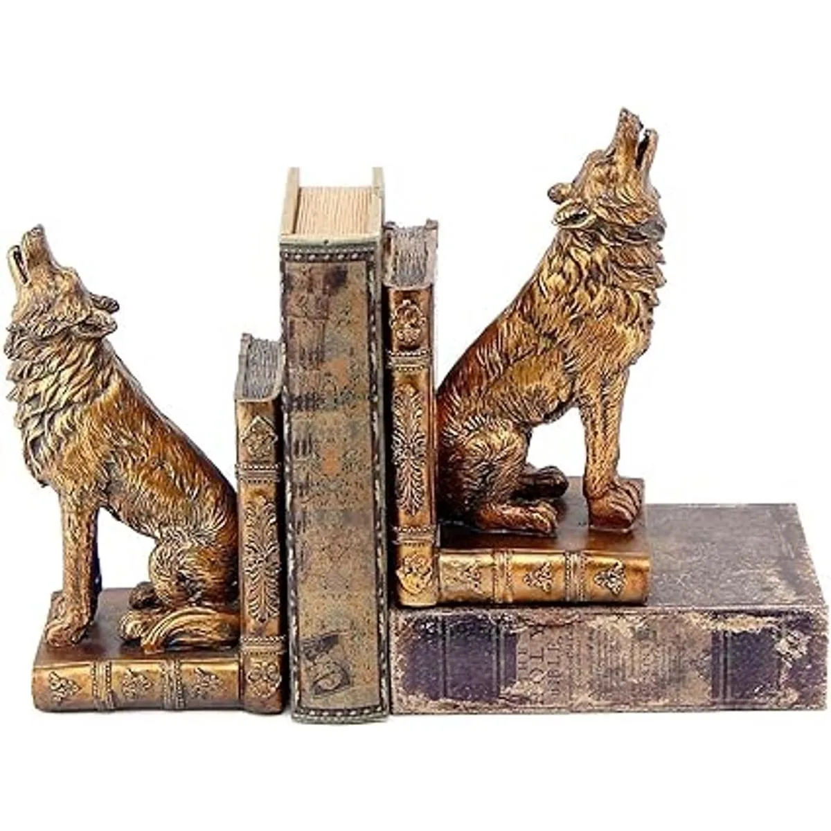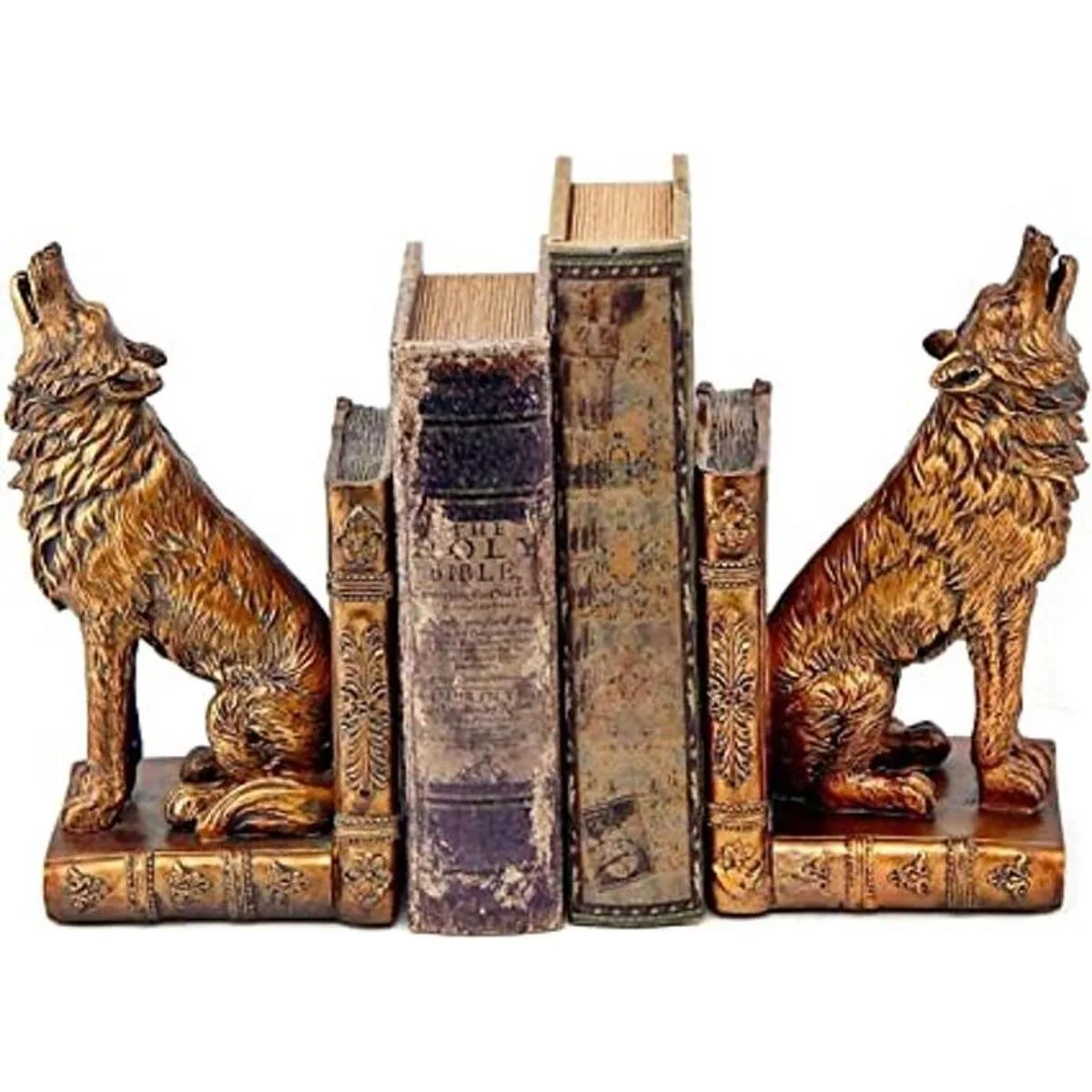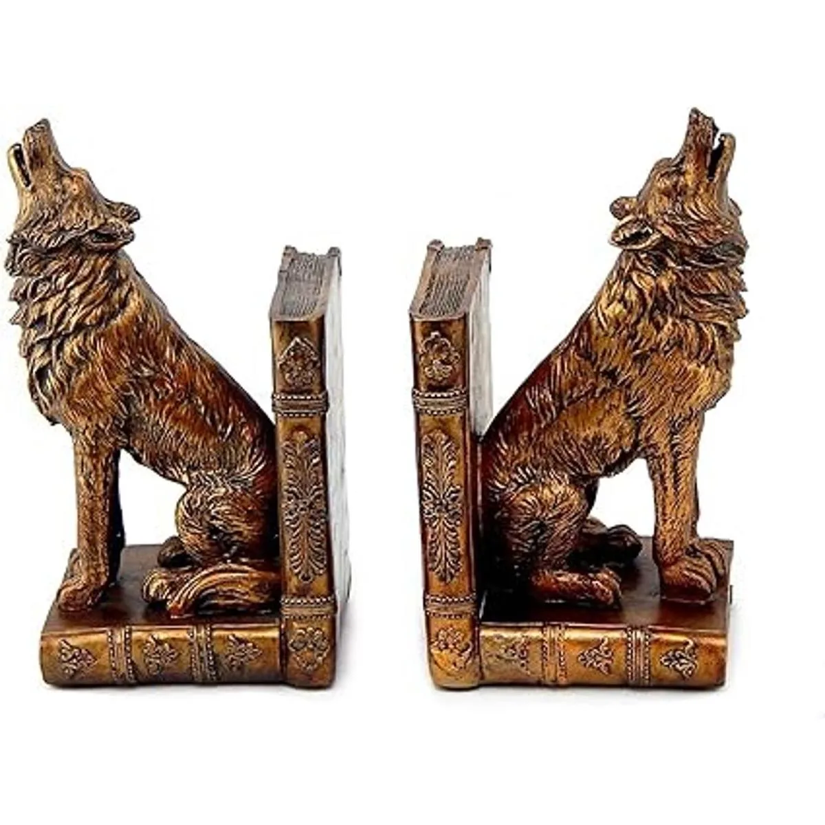 Increíblemente detallado par de sujetalibros decorativos de lobos aulladores