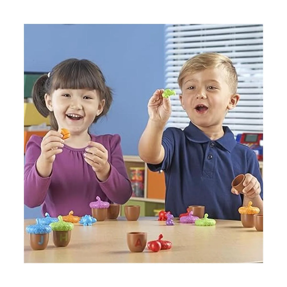 Incluye 26 bellotas de dos piezas y 26 fichas de colores