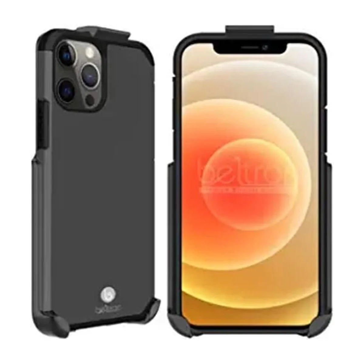 BELTRON Funda con clip para cinturón para iPhone 12 Pro Max protección completa, resistente y con clip para cinturón giratorio, color gris