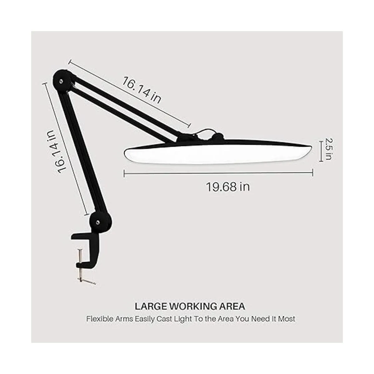 El cabezal de la lámpara de 20 pulgadas de ancho proporciona un área de visualización de iluminación uniforme. Diseño especial que evita sombras, reflejos y deslumbramientos. Ideal para el hogar, estudio, spa, salón, oficina, taller, dormitorio universitario, escuela, hotel. También para computadora, mesa de dibujo, banco de trabajo, escritorio de manualidades, escritorio de escritura, lado de la cama, sala de estar, mesa, luz indirecta, etc.