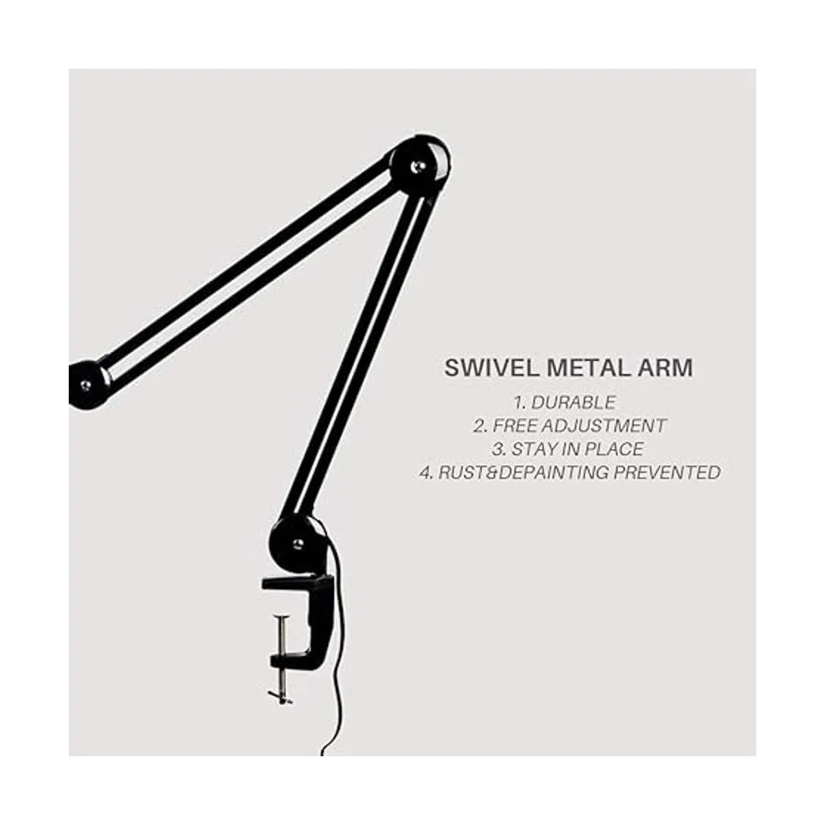 El brazo oscilante de metal ajustable adopta tecnología de pulverización de plástico: más ecológico y duradero durante más tiempo, evita el óxido, resistencia a las manchas y no se decolora fácilmente. Permanece en su lugar lo que necesitas, no caerse. Puede alcanzar casi cualquier ángulo. Lo mejor para ingeniero, diseñador, artista, arquitecto, esteticista, trabajador y mucho más.