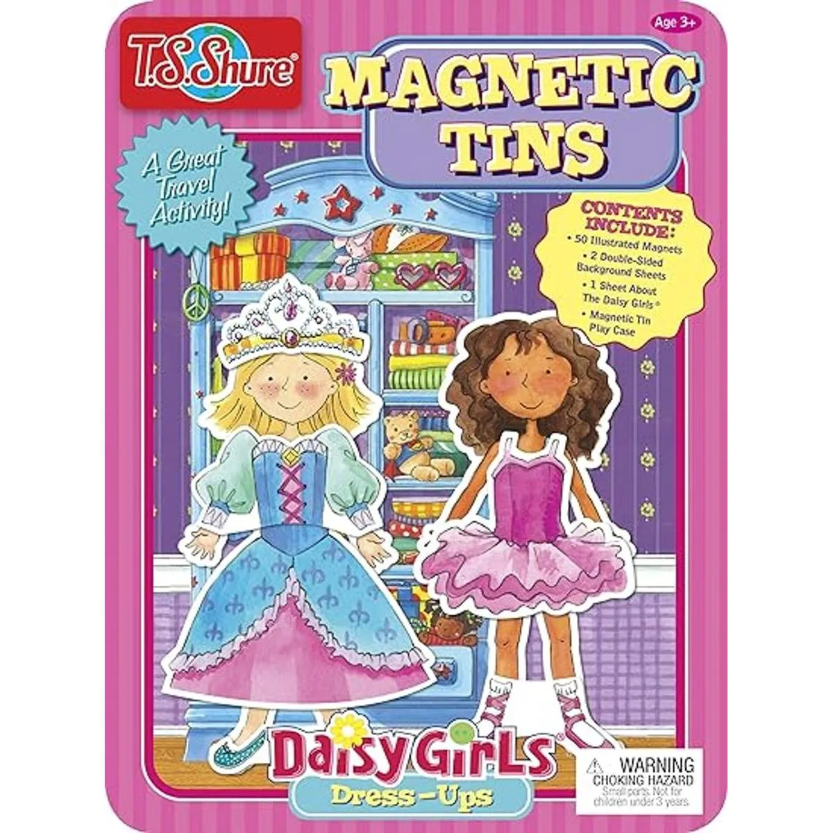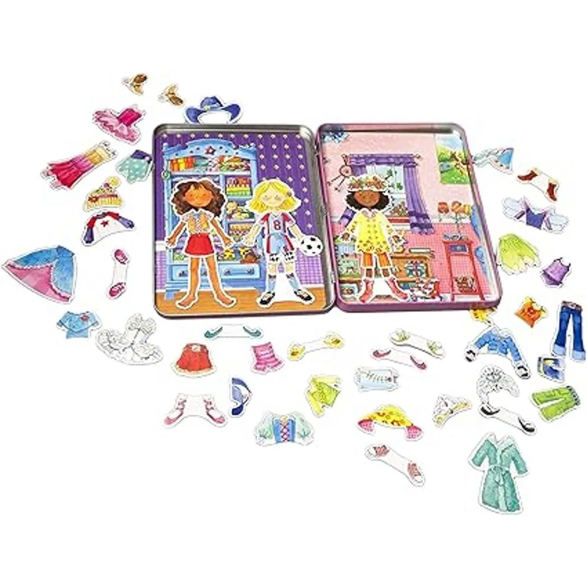 Bendon Daisy Girls Dress Up Magnetic Tin Playset with 3 Illustrated Magnet Sheets and Dual Playscenes TS Shure 50255, Multicolor