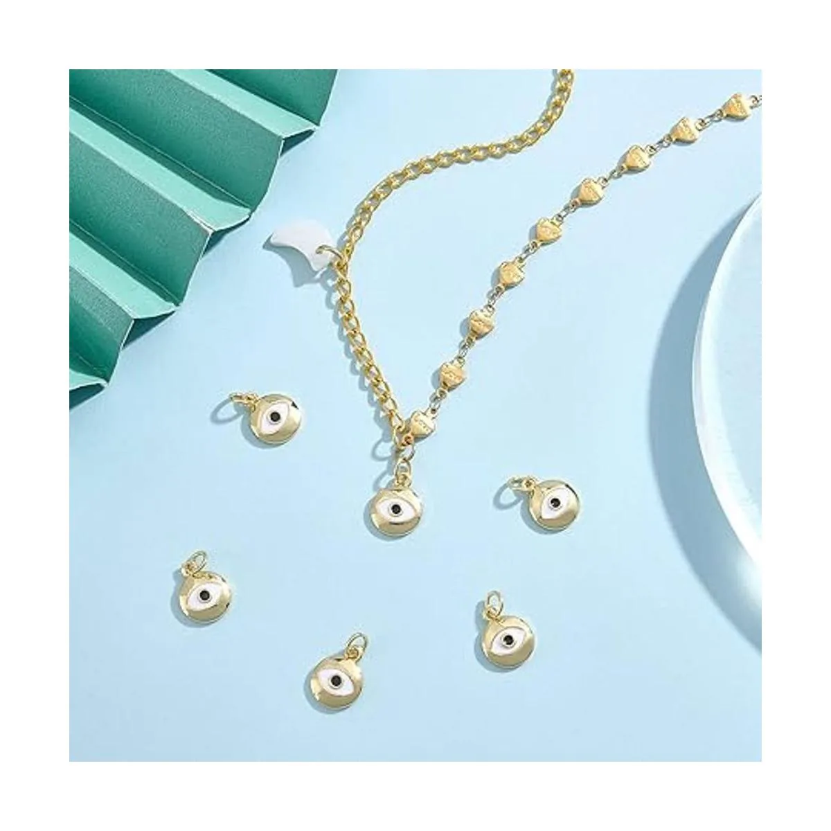 Diseño exquisito: diseñado en forma de mal de ojo, puedes utilizar estos colgantes para hacer regalos especiales de bricolaje.