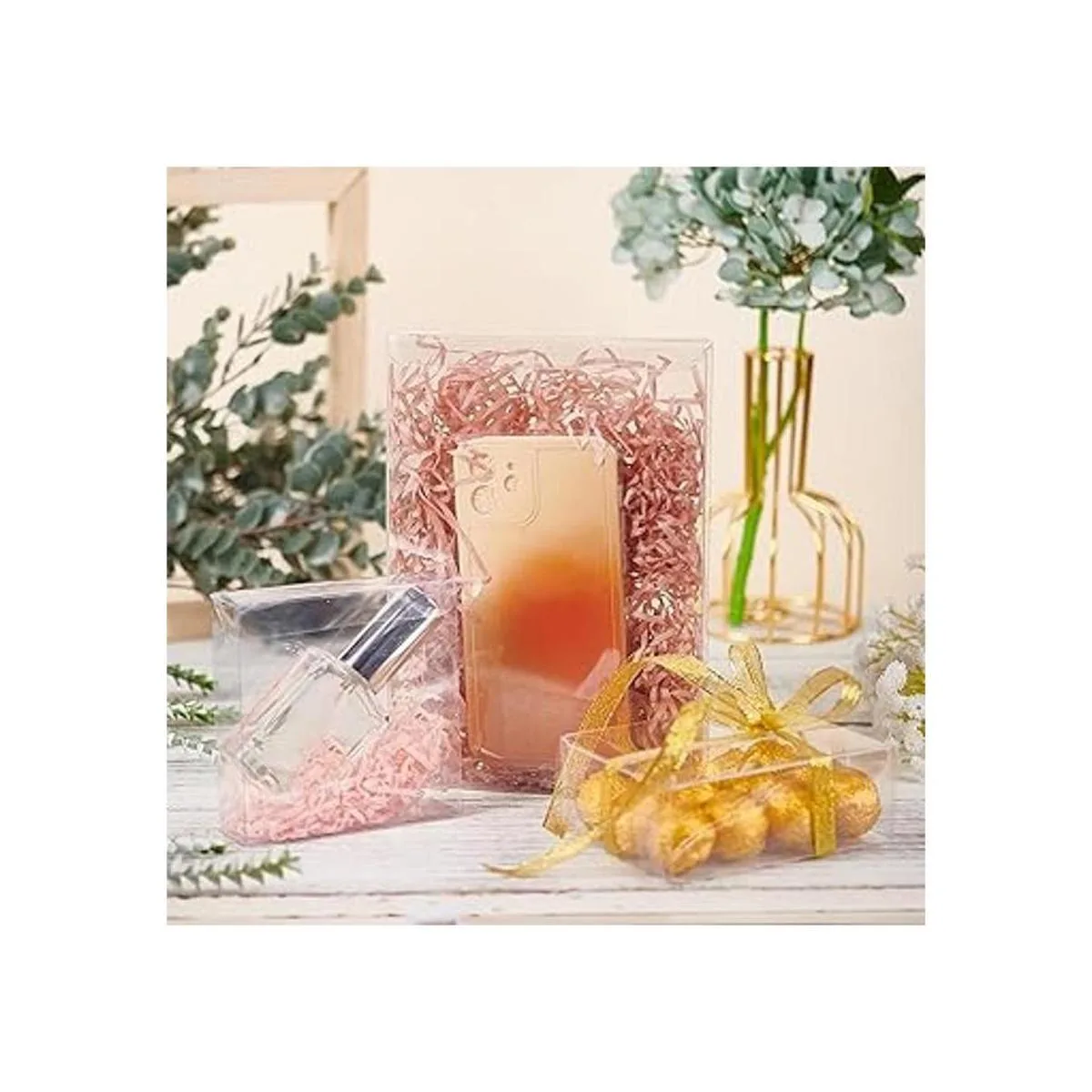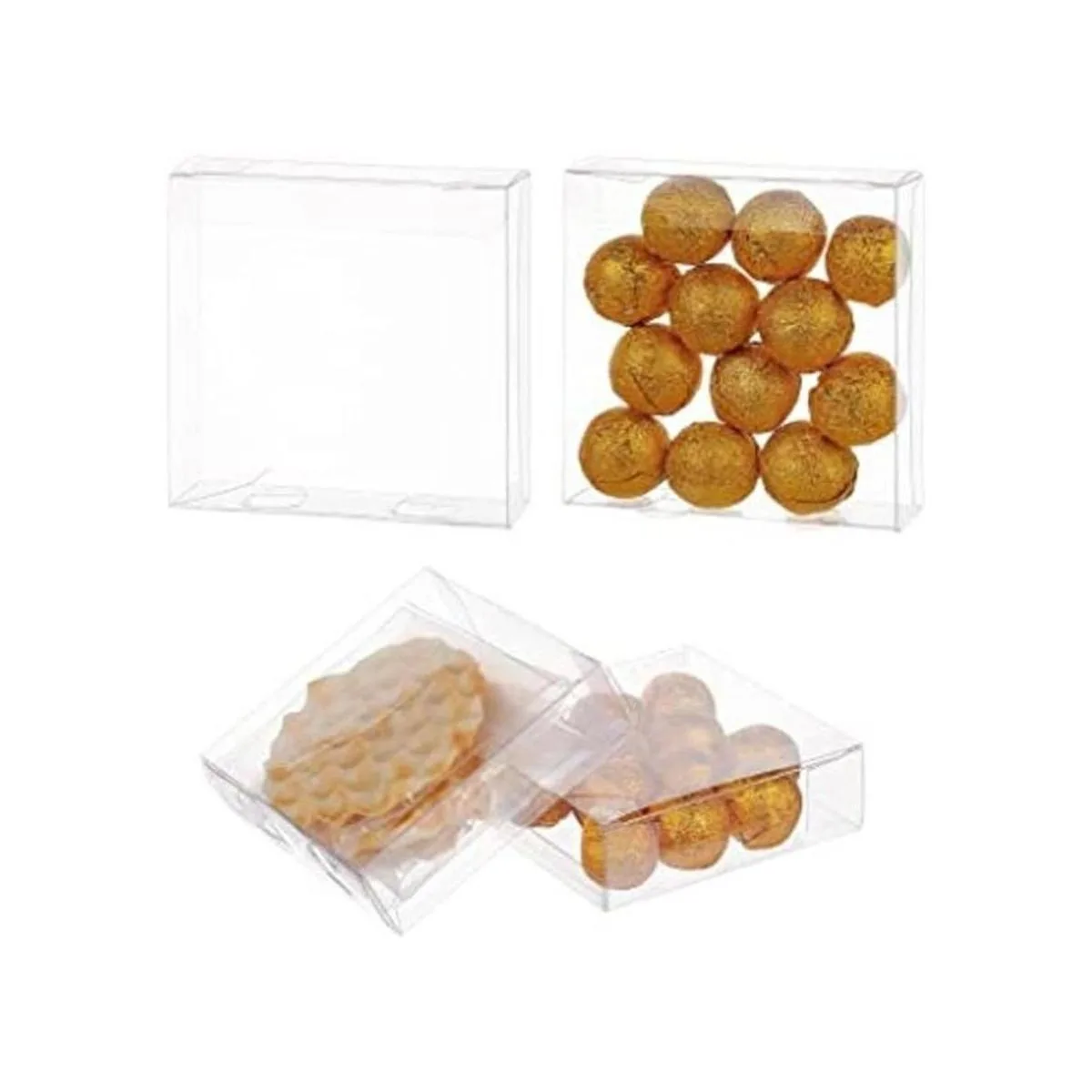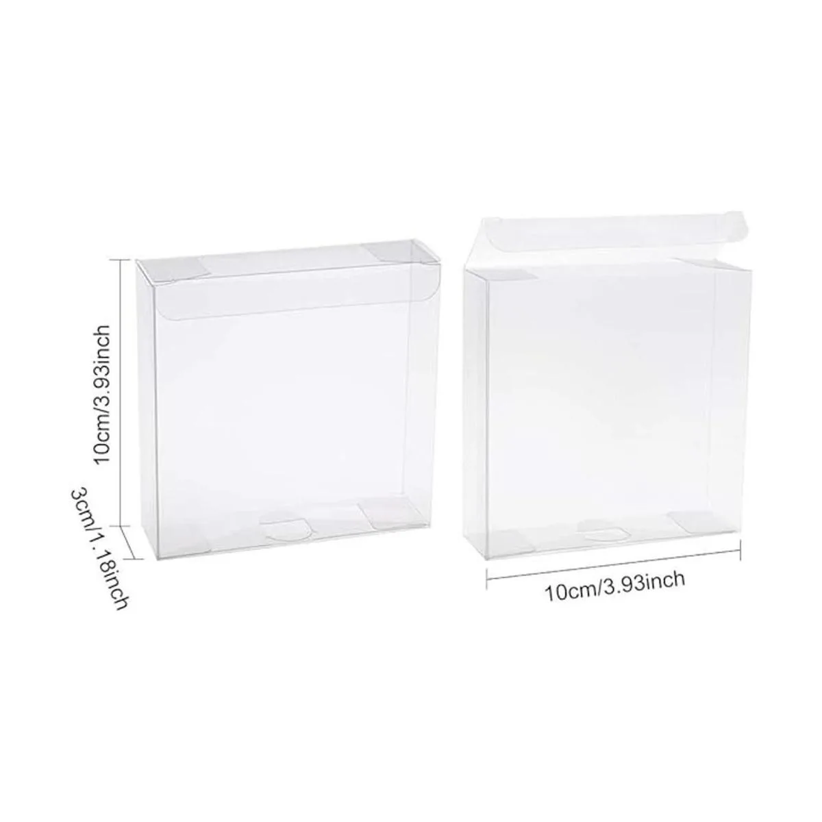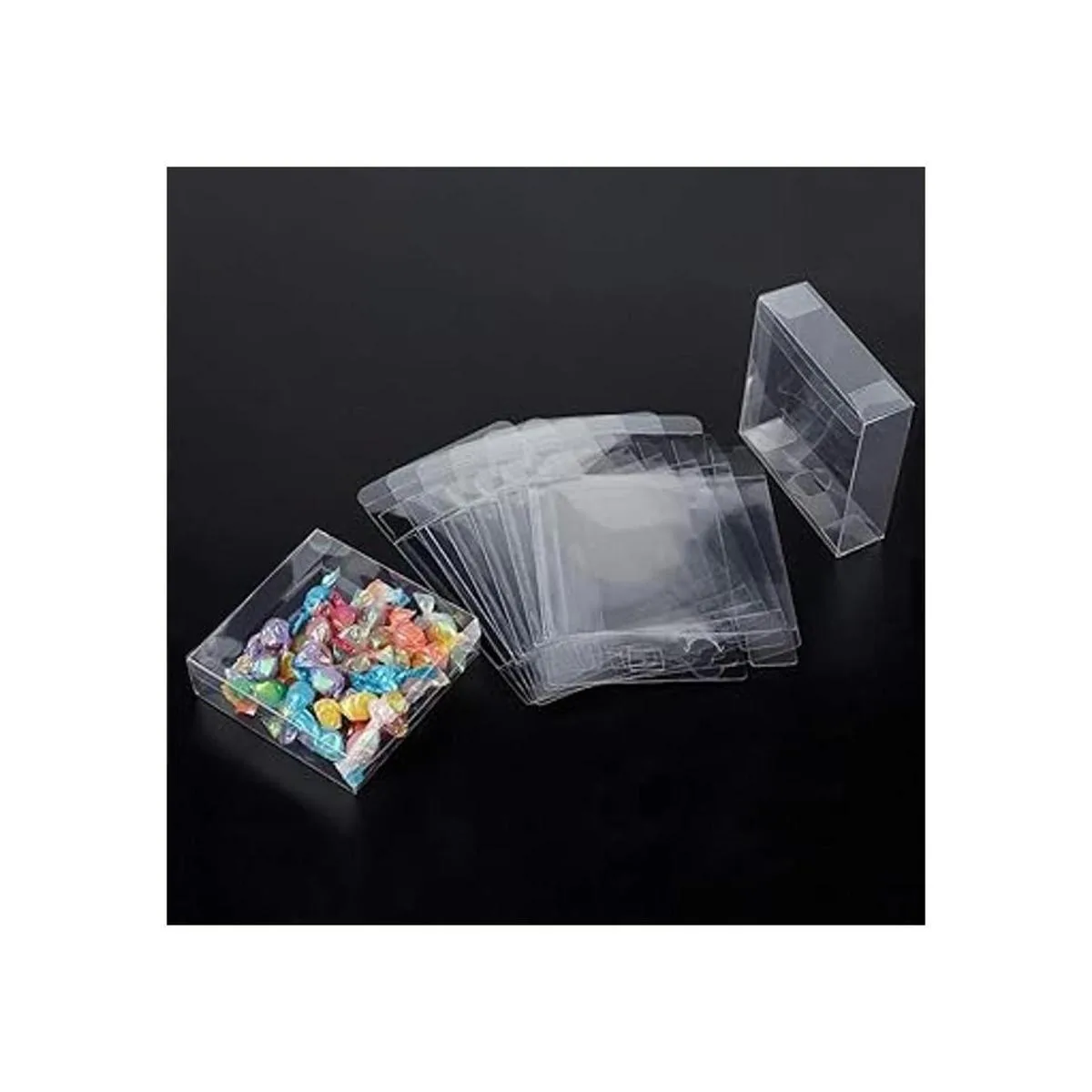 El paquete incluye: 30 cajas de regalo de plástico transparente, mide 3.9 x 3.9 x 1.2 in, rectangular después de montar; tamaño desplegado: 5.1 x 6.7 in