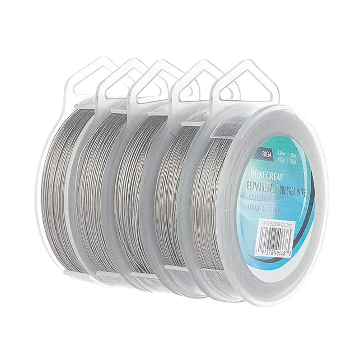 BENECREAT 5 rollos de alambre de acero inoxidable de tamaño mixto de 7 hilos de alambre de cuentas para collar, pulsera y trabajo de artesanía
