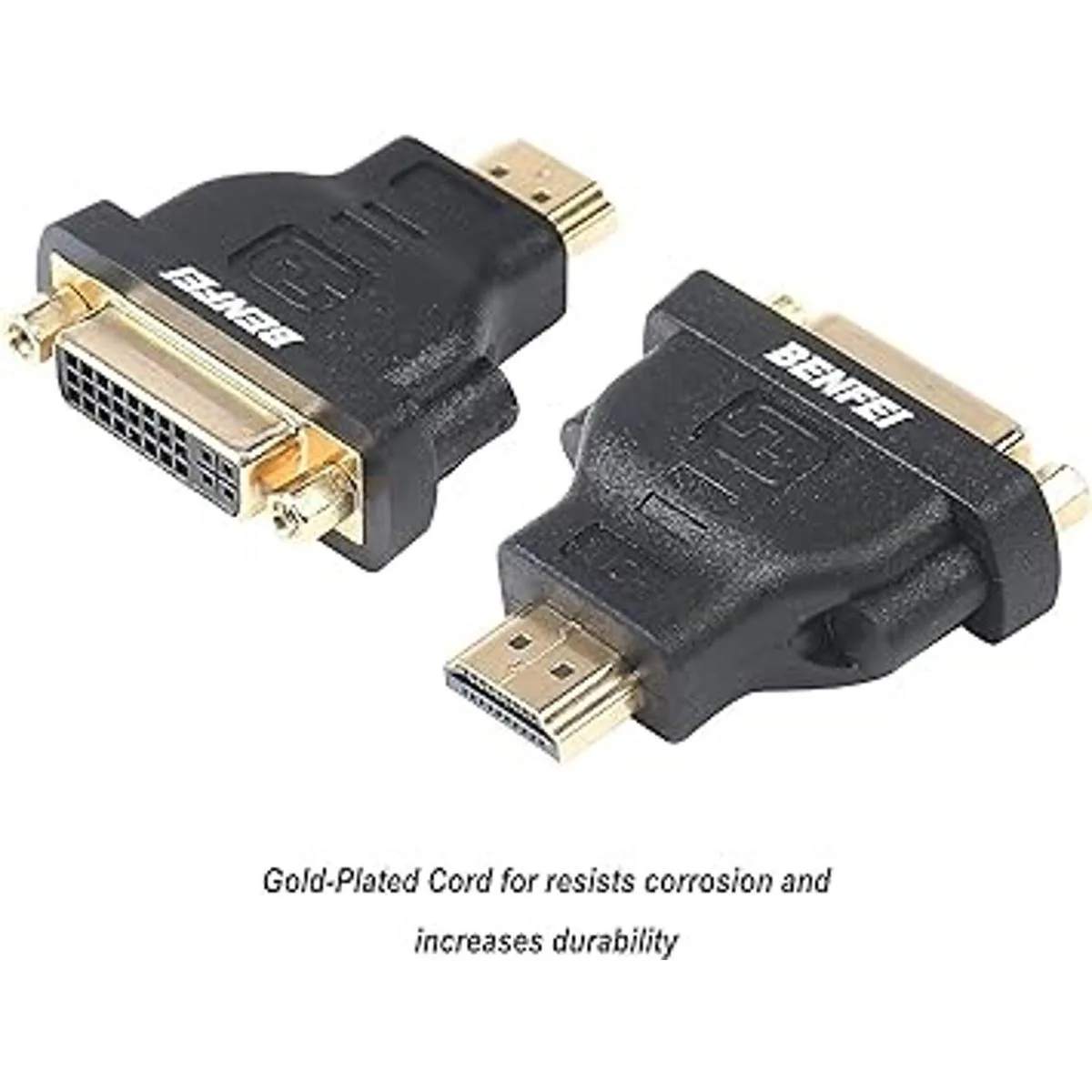 BENFEI Adaptador HDMI a DVI, convertidor bidireccional macho a hembra con cable chapado en oro, paquete de 2 unidades