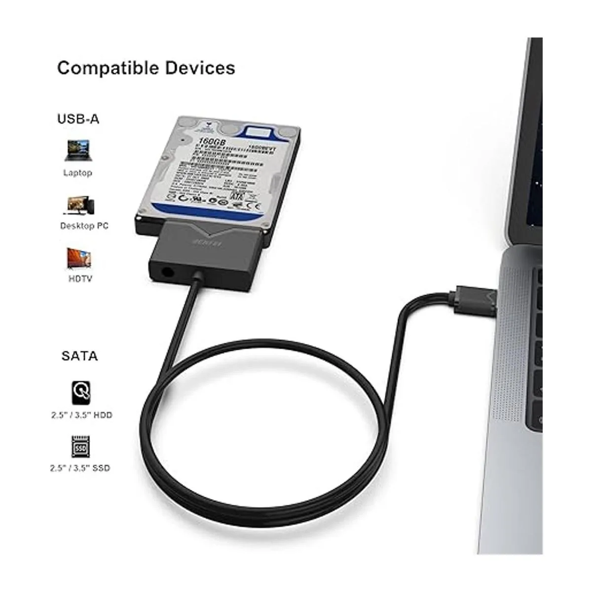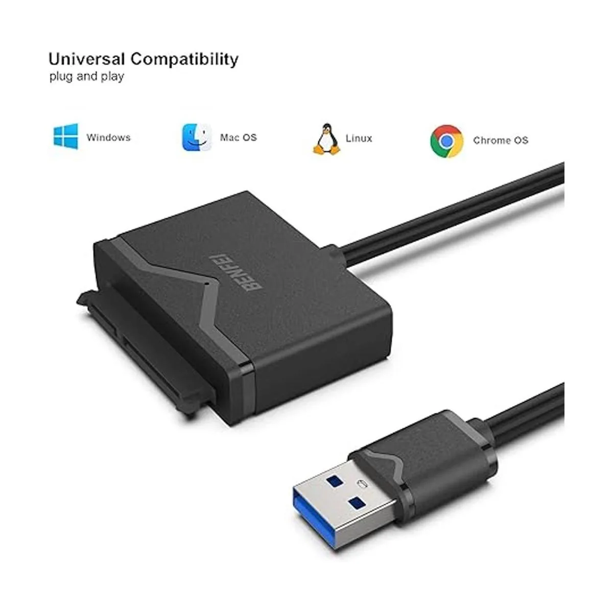 BENFEI Cable SATA a USB 3.0, adaptador de disco duro USB 3.0 a SATA III, compatible con disco duro HDDSSD de 2.5 pulgadas con adaptador de corriente de 12 V2 A, compatible con UASP