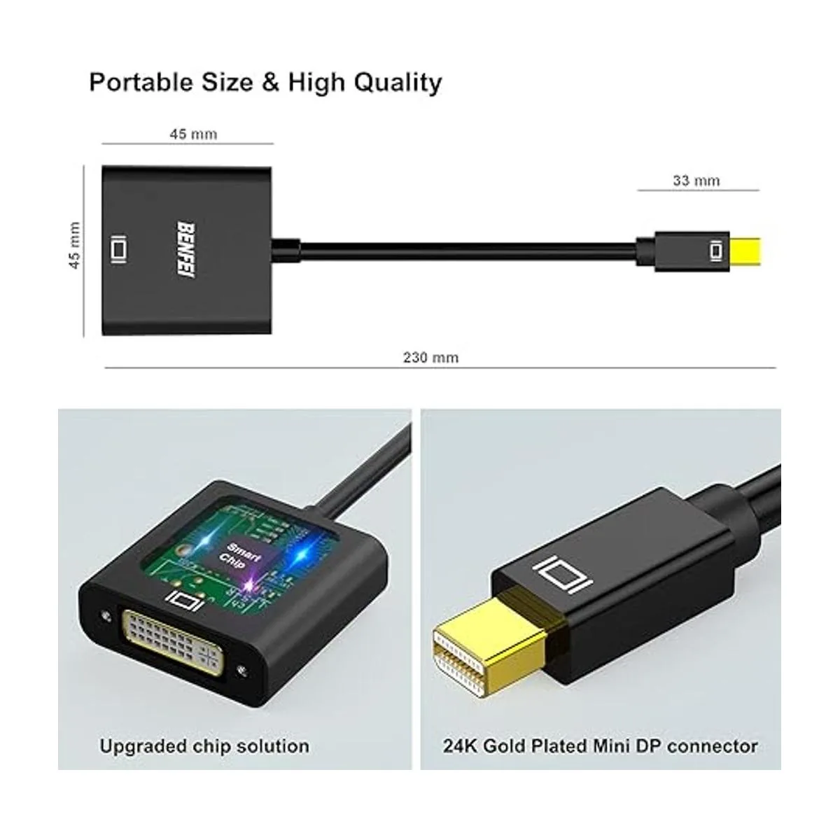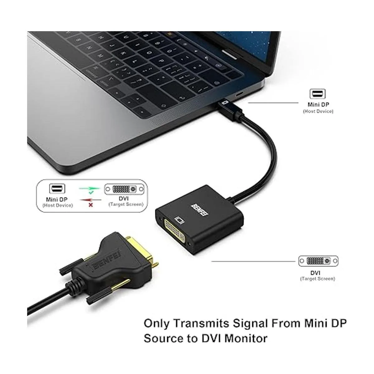 Diseño compacto: el adaptador portátil Benfei Mini DisplayPort a DVI de diseño compacto conecta una computadora, computadora de escritorio, portátil u otros dispositivos con Mini DisplayPort a un monitor, proyector, HDTV u otros dispositivos con puerto DVI; mete este dispositivo ligero en tu bolsa o bolsillo para hacer una presentación de negocios con tu laptop y proyector, o extiende la pantalla de tu escritorio a un monitor o TV; se requiere un cable DVI.