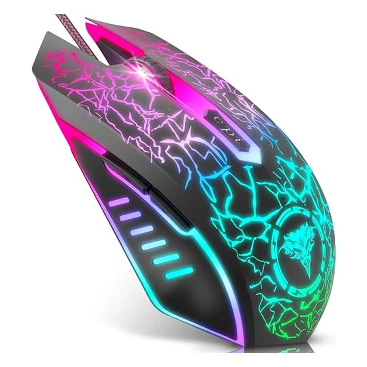 BENGOO Ratón para juegos con cable, ratones ópticos USB con retroiluminación RGB, 4 DPI ajustables hasta 3600, mouse ergonómico para computadora portátil gamer con 6 botones programables para Windows 7810XP Vista Linux, color negro