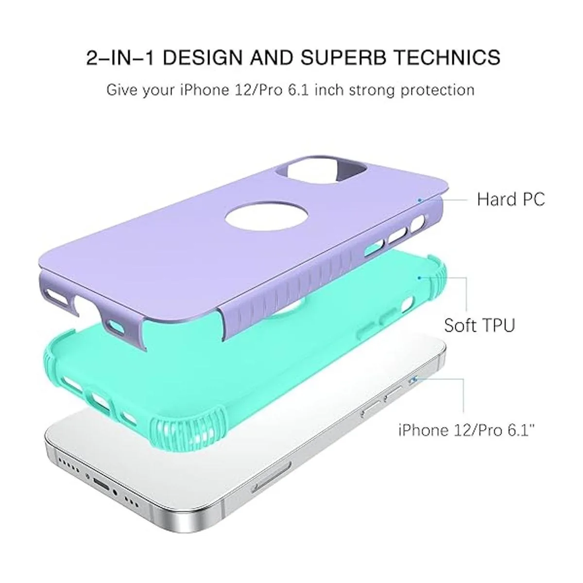 BENTOBEN Funda para iPhone 12, funda para teléfono iPhone 12 Pro, resistente 2 en 1, cuerpo completo, resistente, a prueba de golpes, protección híbrida de policarbonato duro contra caídas, protección contra caídas para niñas y mujeres y niños para iPhone 1212 Pro, púrpuramenta
