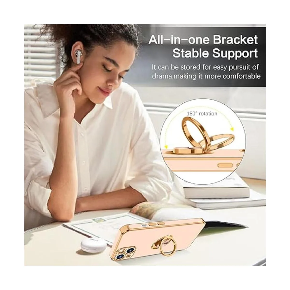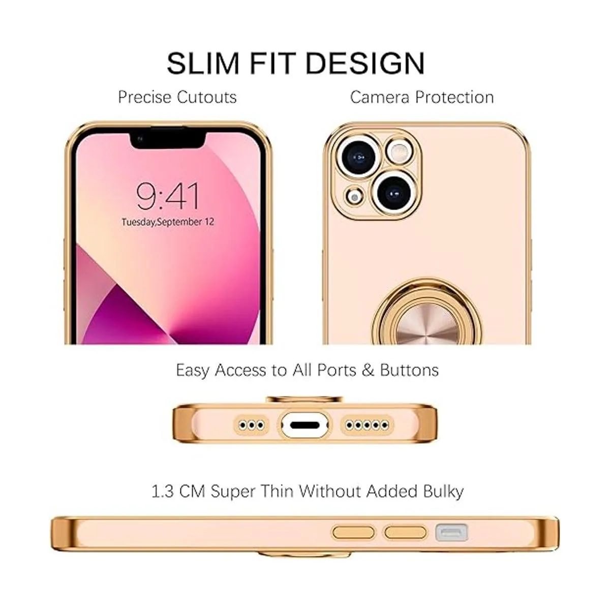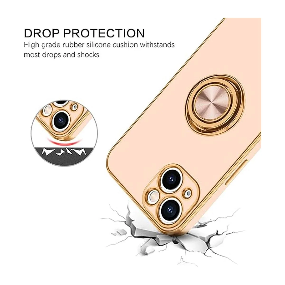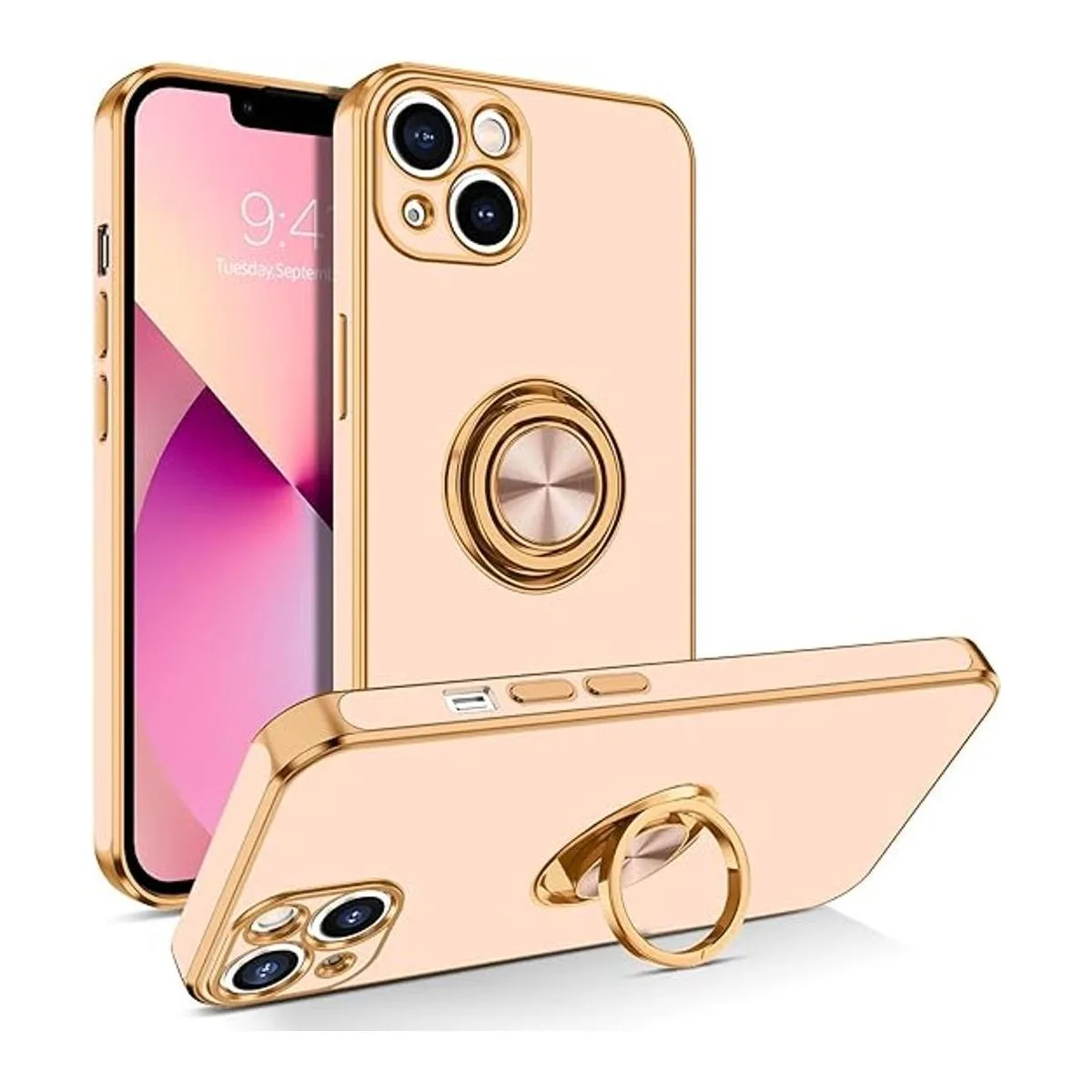 360 Adjustable Ring Holder Stand Compatible with iPhone 13 case with ring stand holder provides multiple adjustable angles 360 degrees horizontally and 180 degrees vertically according to your preference needs. The iPhone 13 ring case fits comfortably over your finger to provide added security when holding the phone and can also be used as a kickstand for handsfree viewing.