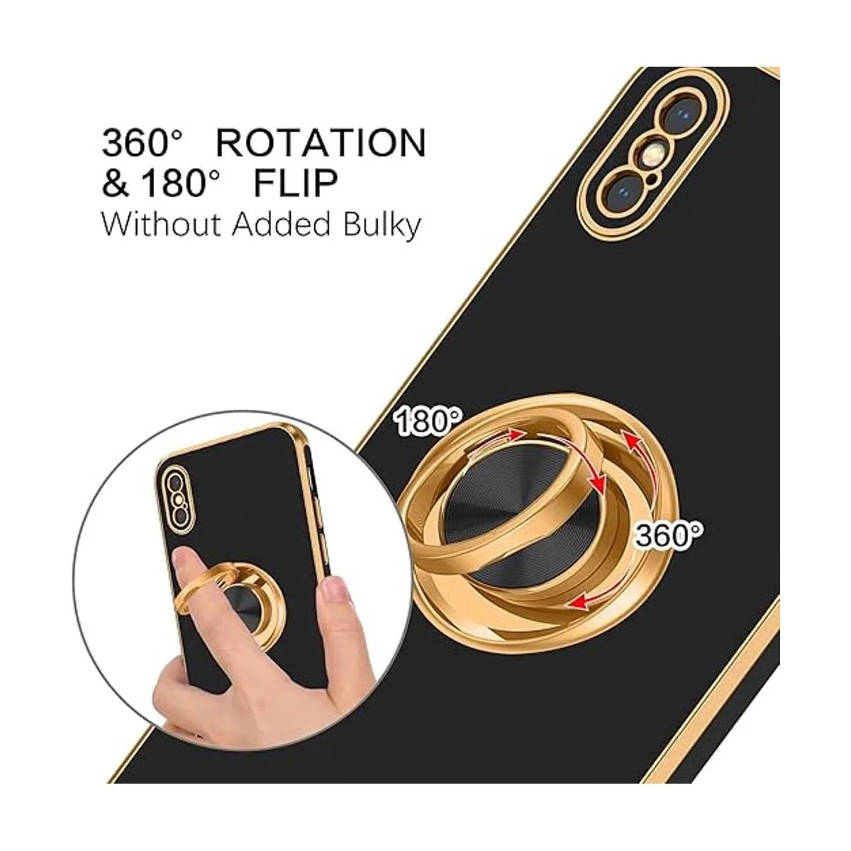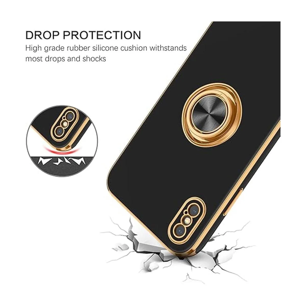 BENTOBEN Funda para iPhone XS, funda para teléfono iPhone X, ajuste delgado, diseño de soporte de anillo de soporte brillante a prueba de golpes, protección suave de poliuretano termoplástico contra caídas, protección contra caídas para niñas, mujeres y niños, iPhone XsX de 5.8 pulgadas, negrodorado