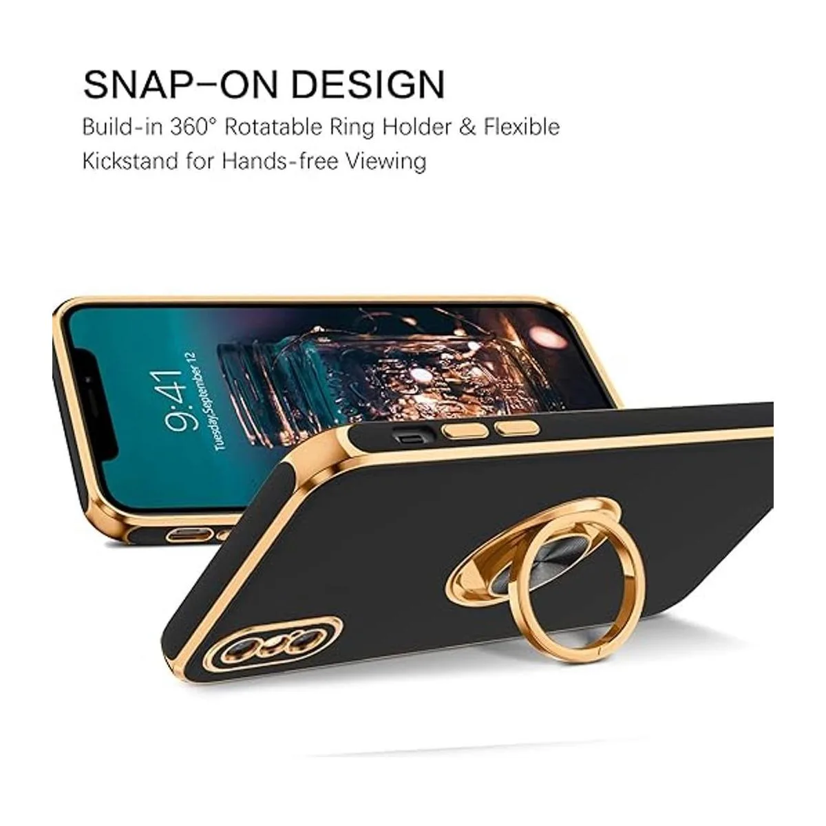 BENTOBEN Funda para iPhone XS, funda para teléfono iPhone X, ajuste delgado, diseño de soporte de anillo de soporte brillante a prueba de golpes, protección suave de poliuretano termoplástico contra caídas, protección contra caídas para niñas, mujeres y niños, iPhone Xs/X de 5.8 pulgadas, negro/dorado