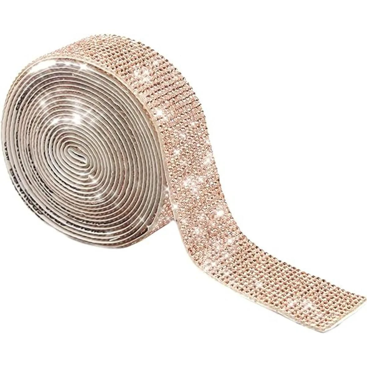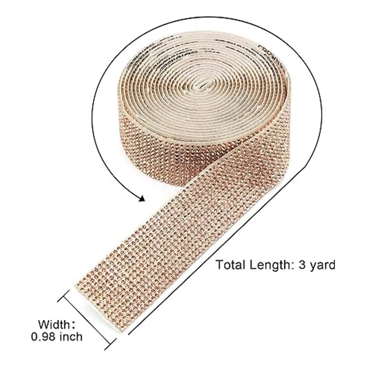 Benvo Cinta autoadhesiva con diamantes de imitación de cristal brillante para decoración de bricolaje con diamantes de imitación de 0.079 in para proyectos de arte del teléfono del coche, tartas de cumpleaños, manualidades 12 filas de 3 yardas