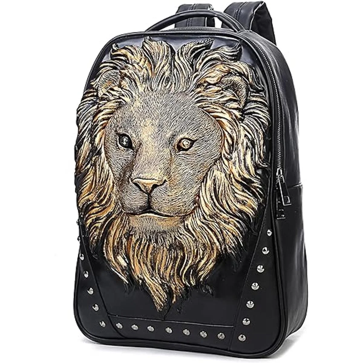 Berchirly Lionhead Mochila de hombro portátil para mujeresniñas, hombresniños, Computadora portátil, Oro