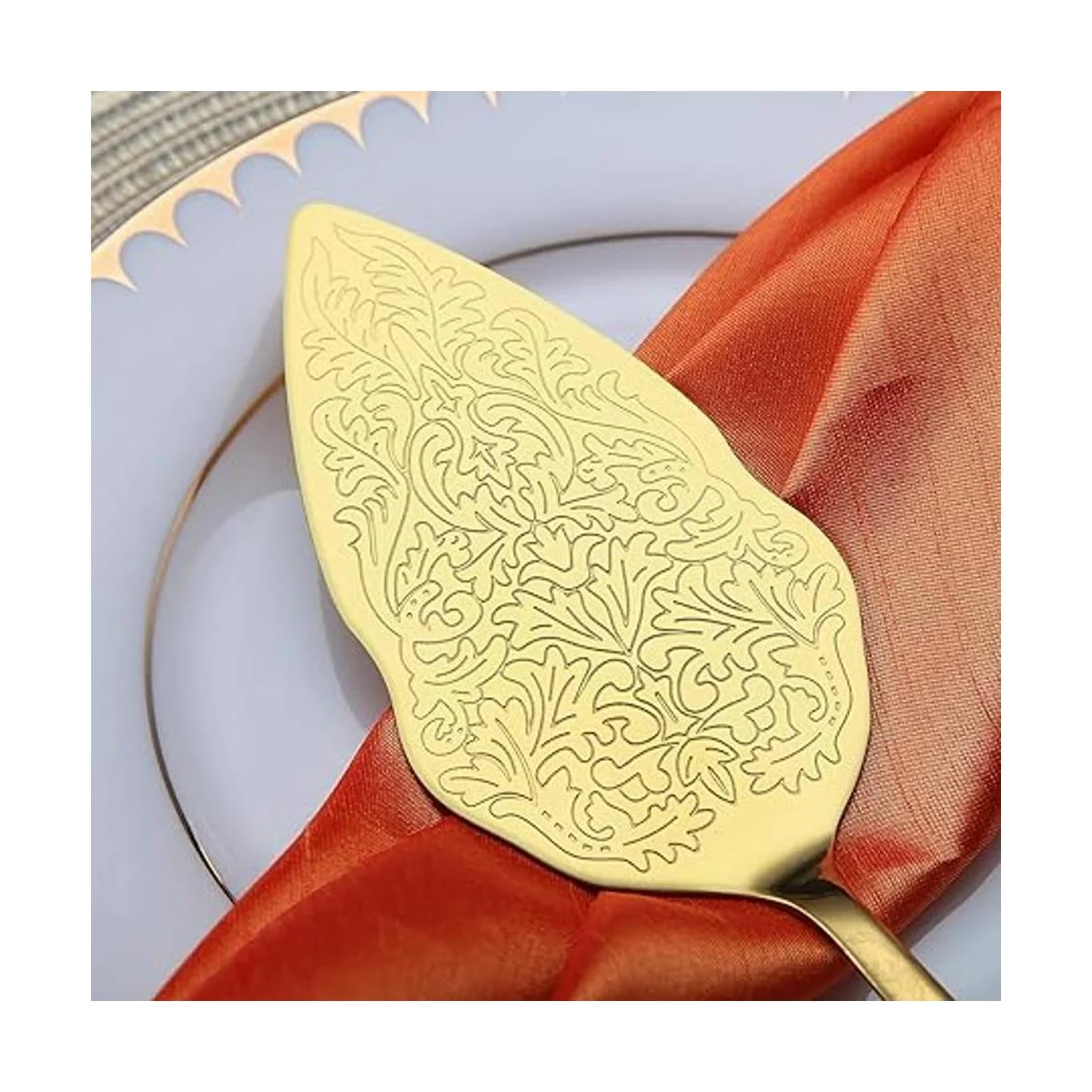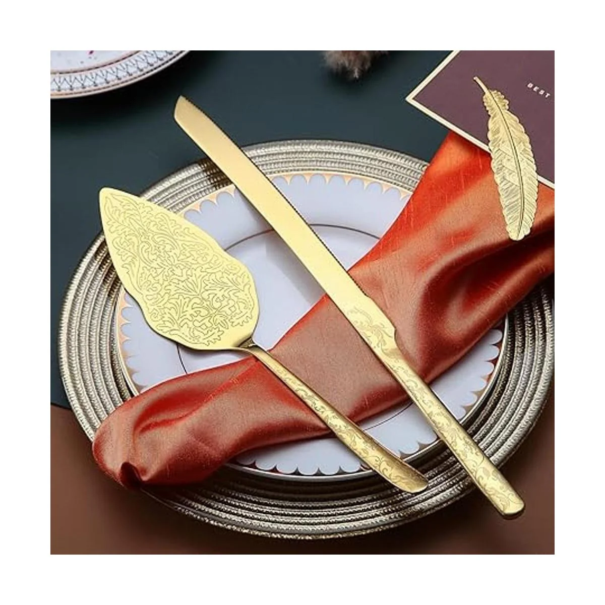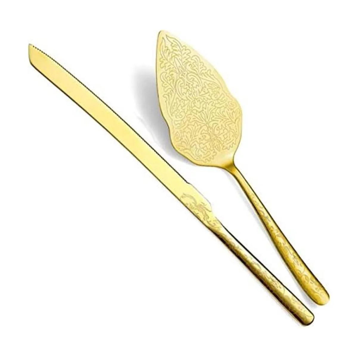 Juego de 2 piezas para servir tartas de boda que incluye: 1 cuchillo dorado para pastelería y 1 servidor dorado para pastelería