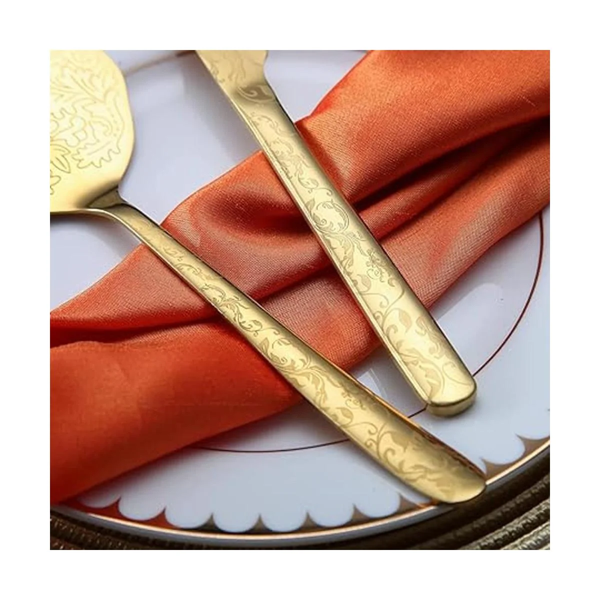 Chapado en oro de titanio de lujo y diseño de patrón único: hecho de acero inoxidable de alta calidad, fuerte antioxidante, sin plomo y sin níquel, saludable para tu uso diario. Chapado en oro de titanio y diseño de patrón único, se ve hermoso y lujoso, combina con todos tus utensilios de cocina dorados.