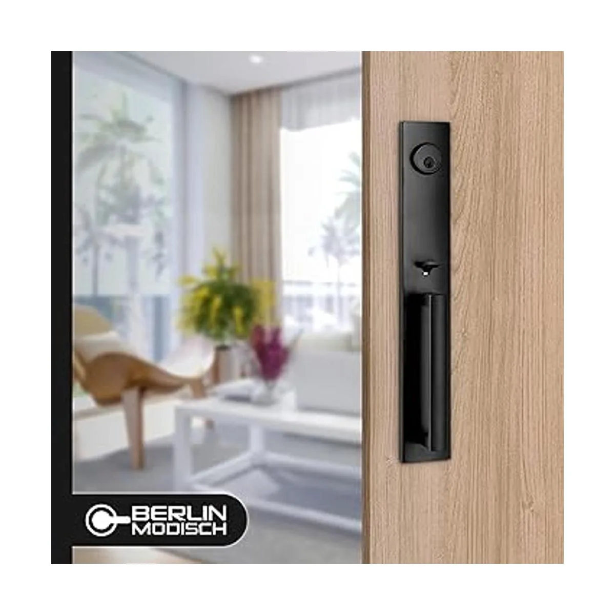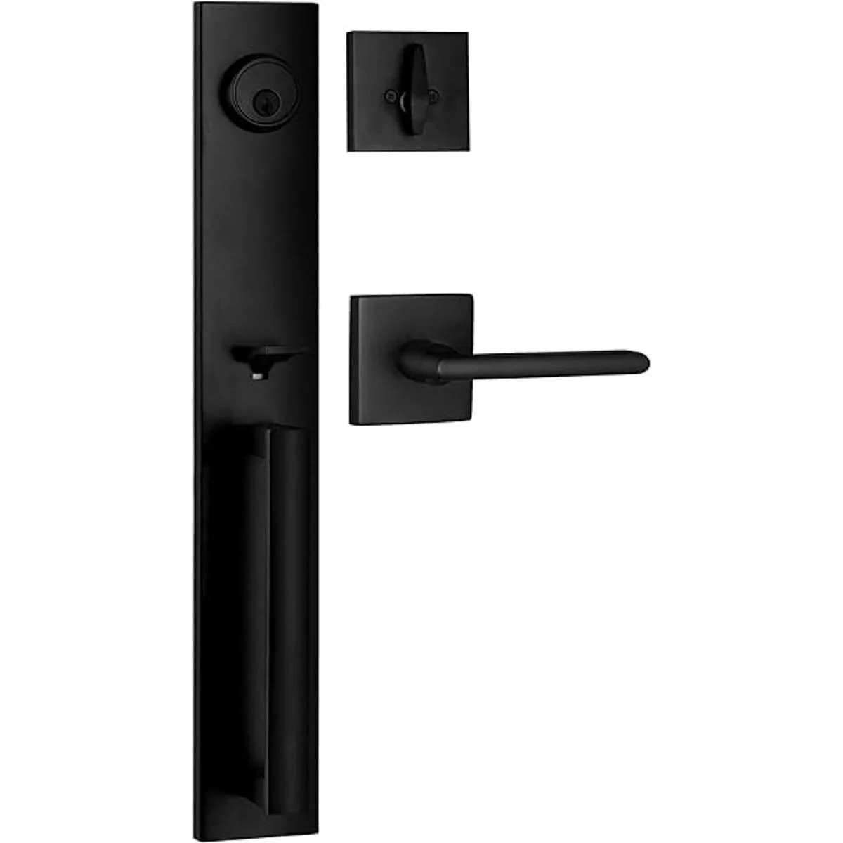 Berlin Modisch Juego de manija con escudo completo, para entrada, puerta delantera, juego de cerrojo con cerradura y manija, cerradura cuadrada y delgada de un solo cilindro y palanca de alta resistencia.