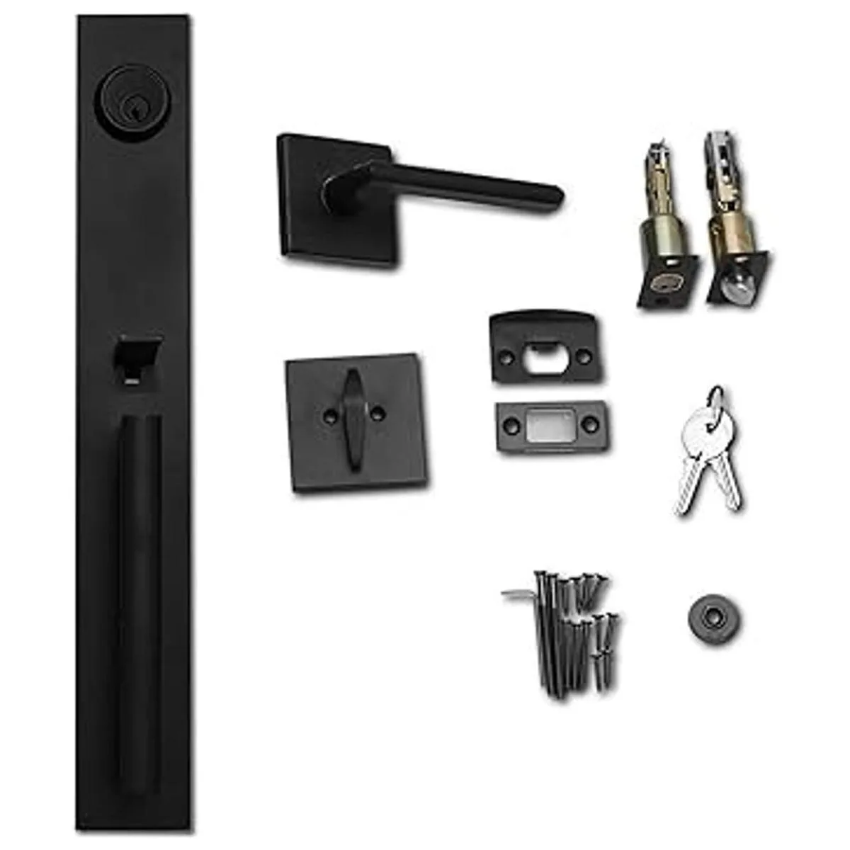Juego de entrada de manija de puerta exterior de perfil bajo XL de 1 pieza de perfil bajo y cerrojo con pestillo ajustable de 2 3/8 a 2 3/4 pulgadas con golpeador de esquina cuadrado