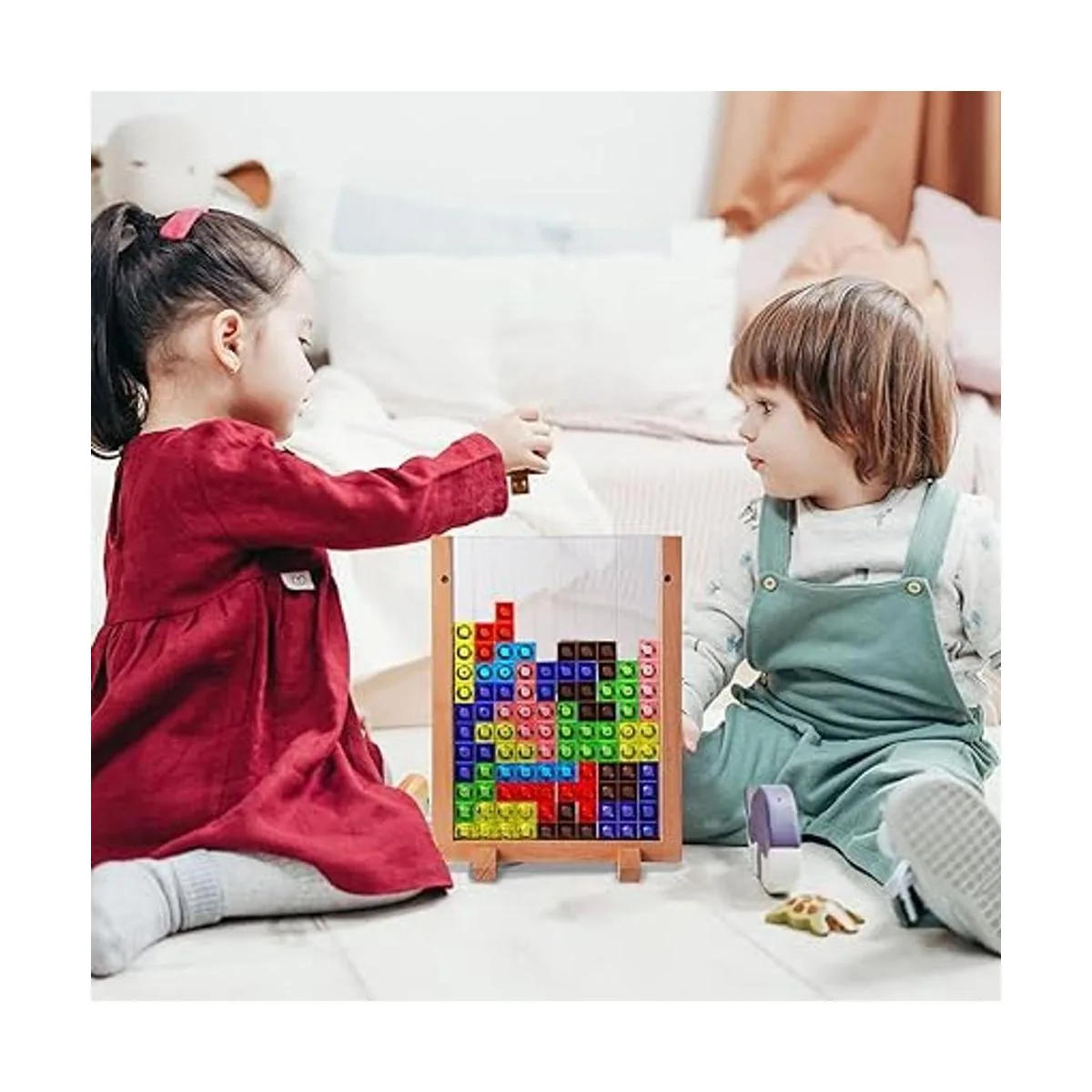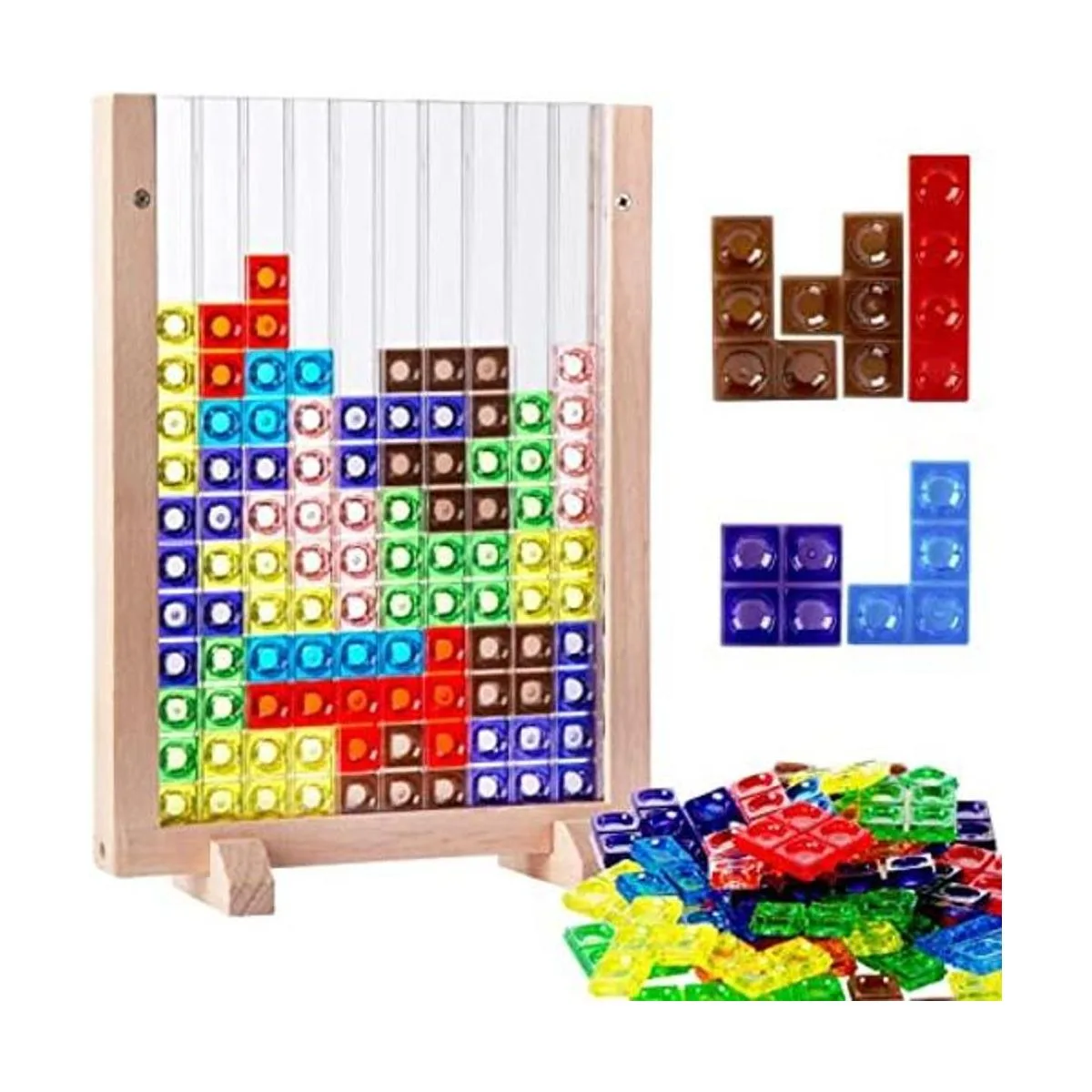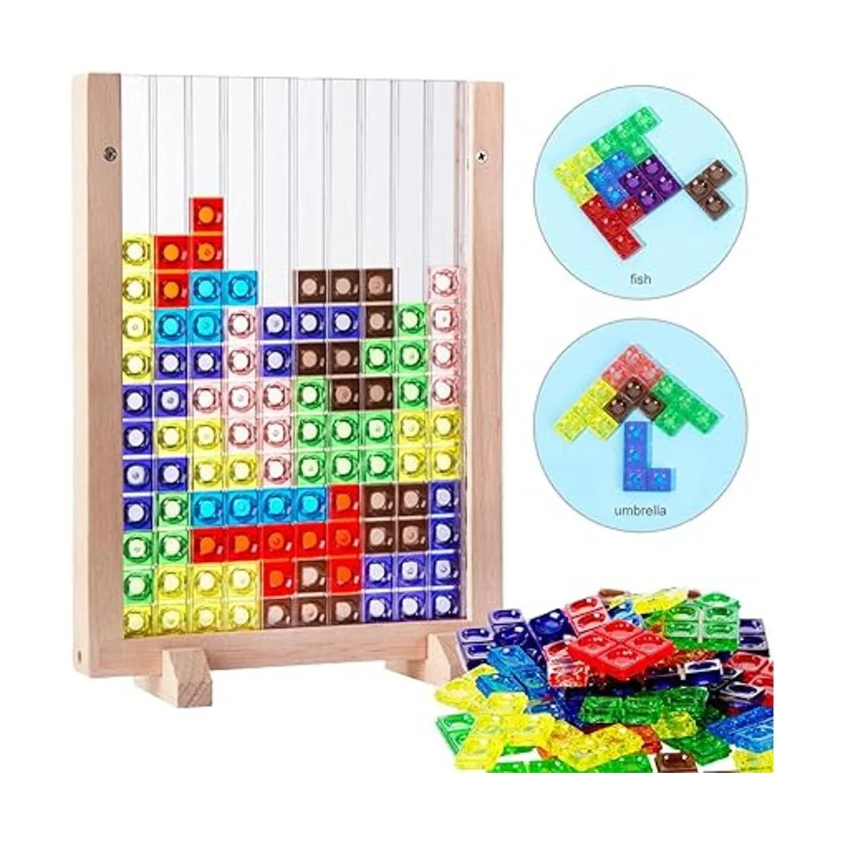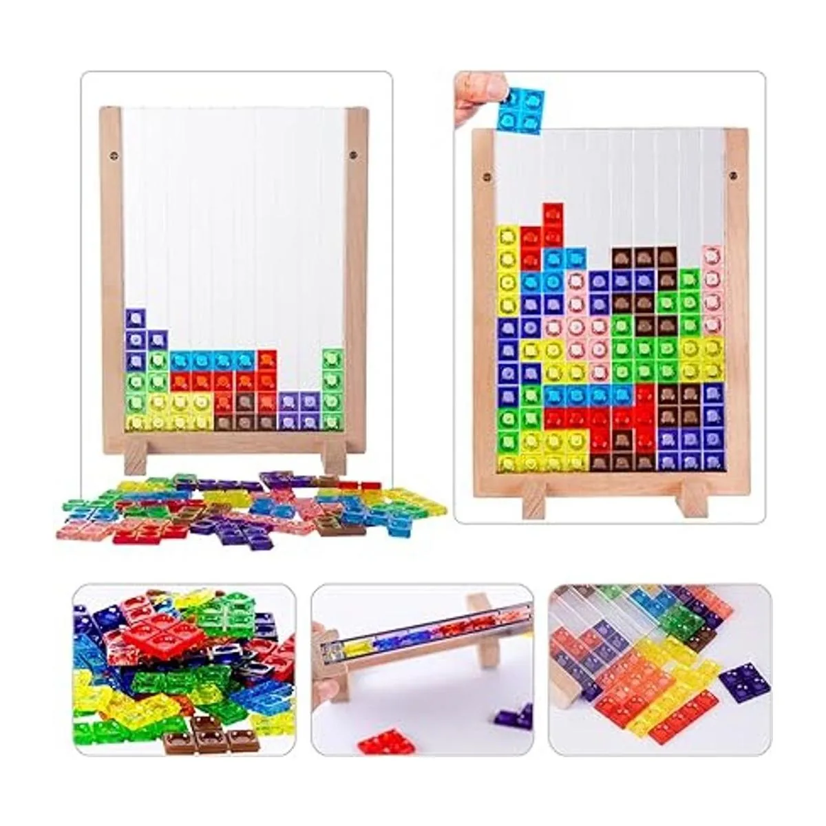 Material de alta calidad: los rompecabezas de juegos de bloques rusos están hechos de material ABS respetuoso con el medio ambiente con superficie lisa y de alta calidad. El marco está hecho de madera de haya gruesa con la característica de textura dura y fuerte resistencia al impacto. No es fácil de deformar y agrietar. No contiene pintura ni cera.