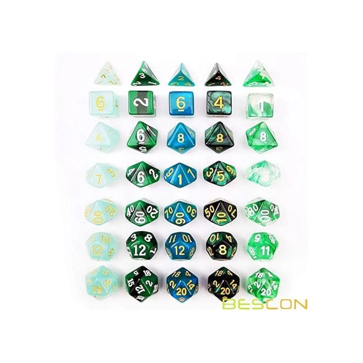 Bescon RPG Juego de dados de 35 piezas, DND juego de rol dados 5 x 7 piezas amatistas Set y esmeraldas