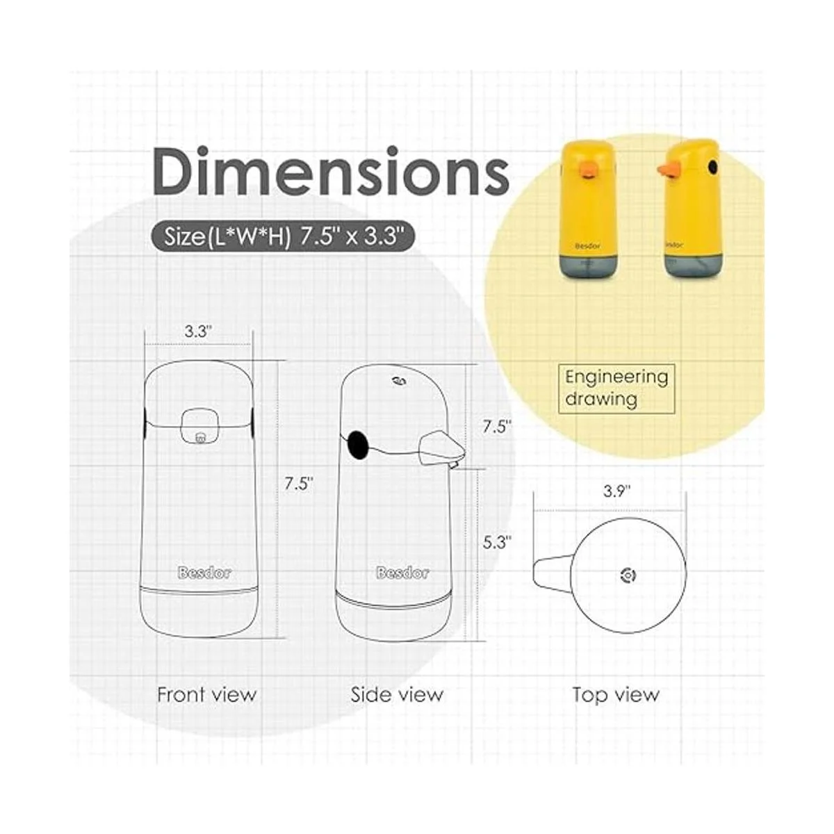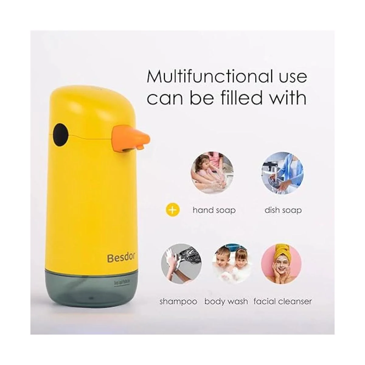 Besdor Dispensador automático de jabón, lindo dispensador de jabón sin contacto de pato amarillo, sensor infrarrojo, funciona con pilas, para baño y cocina