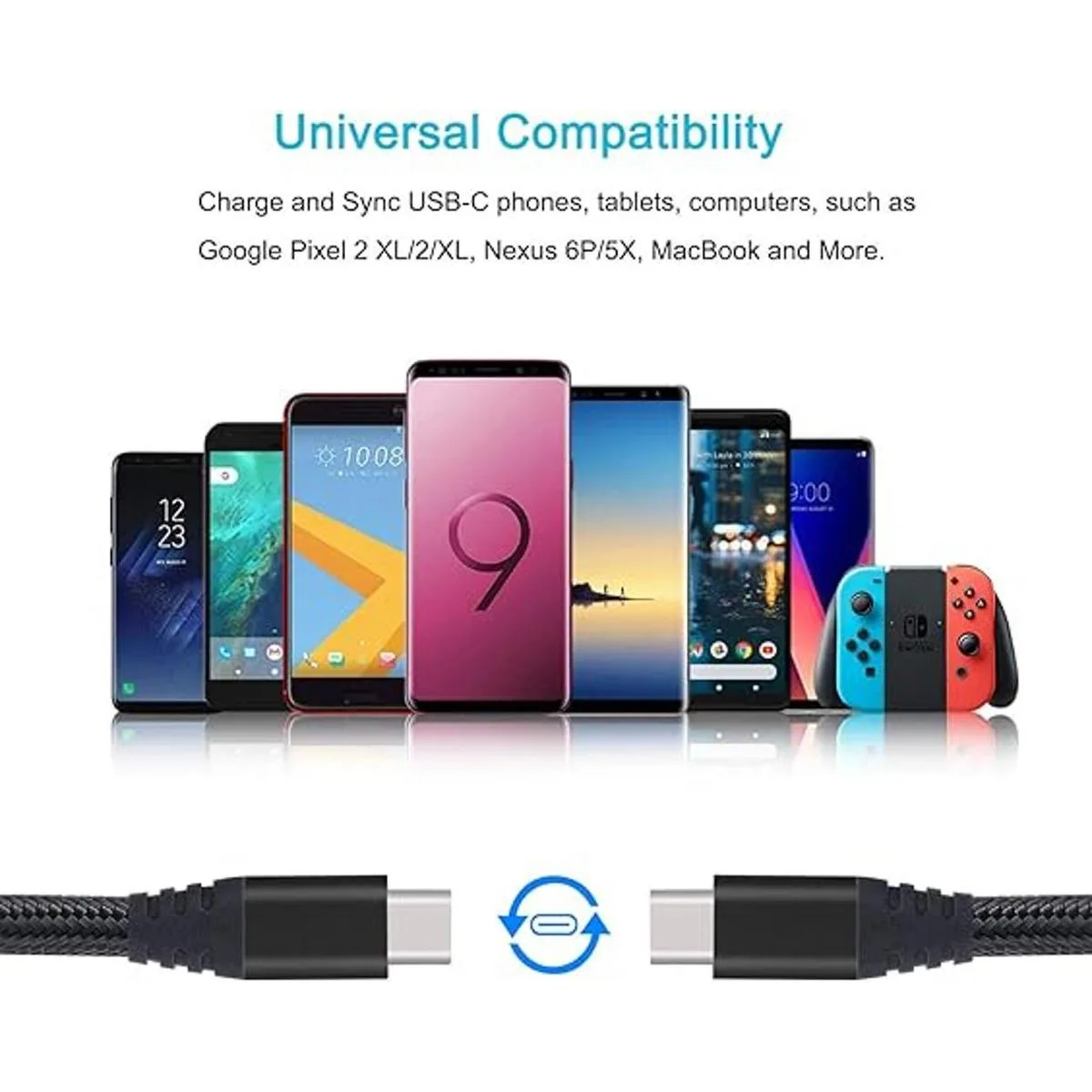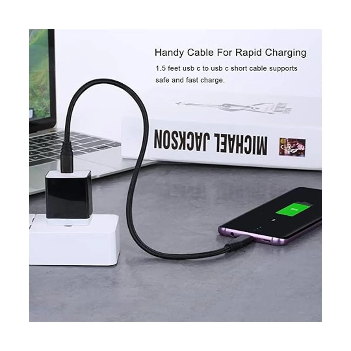 Besgoods Cable corto USB C a USB C, cargador USB 2.0 tipo C de 1.5 pies, carga rápida y cable trenzado de transferencia de datos, compatible con Samsung Galaxy S22 UltraS21S20A53Note10, Pixel 65, iPad, paquete de 2 unidades, color negro
