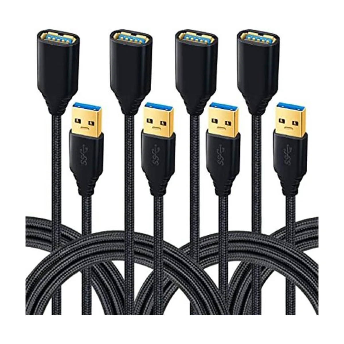 Besgoods Cable de extensión USB 3.0, paquete de 4 6 pies USB A macho a hembra, cable de extensión trenzado de 5 Gbps de transferencia rápida de datos para disco duro, teclado, mouse, cámara web, unidad flash USB, impresora, color negro