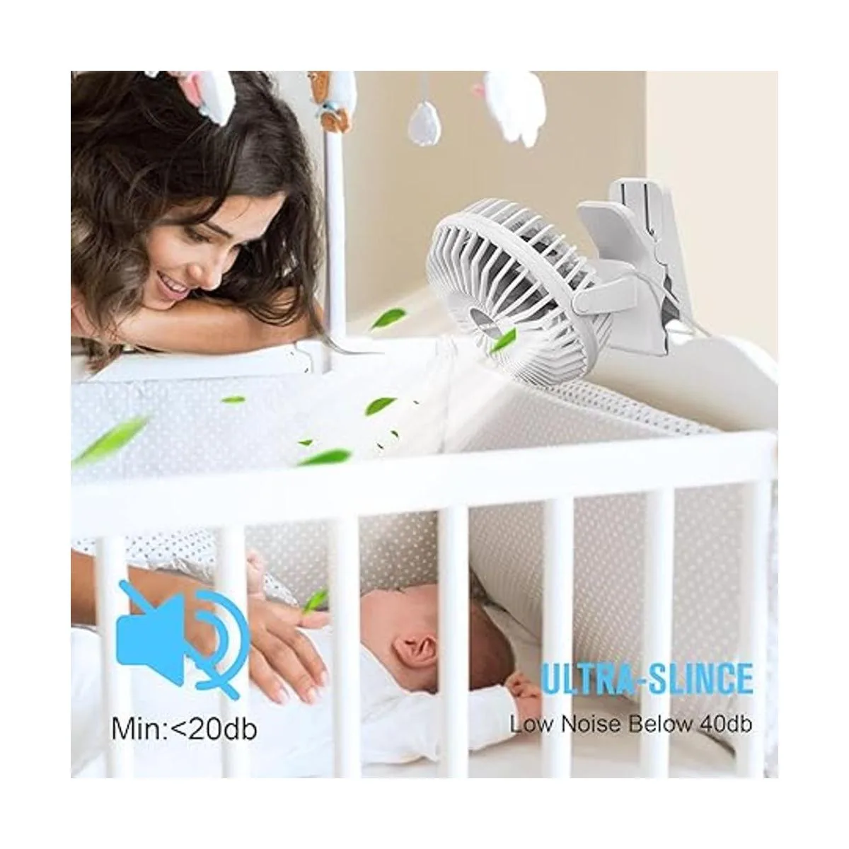 Apto para bebés: diseñado con un espacio estrecho, por lo que es seguro de usar incluso para bebés y niños pequeños, protege los pequeños dedos curiosos de ser dañados por la hoja del ventilador en movimiento. El diseño humanizado puede dejar reposar la mente de las mamás.