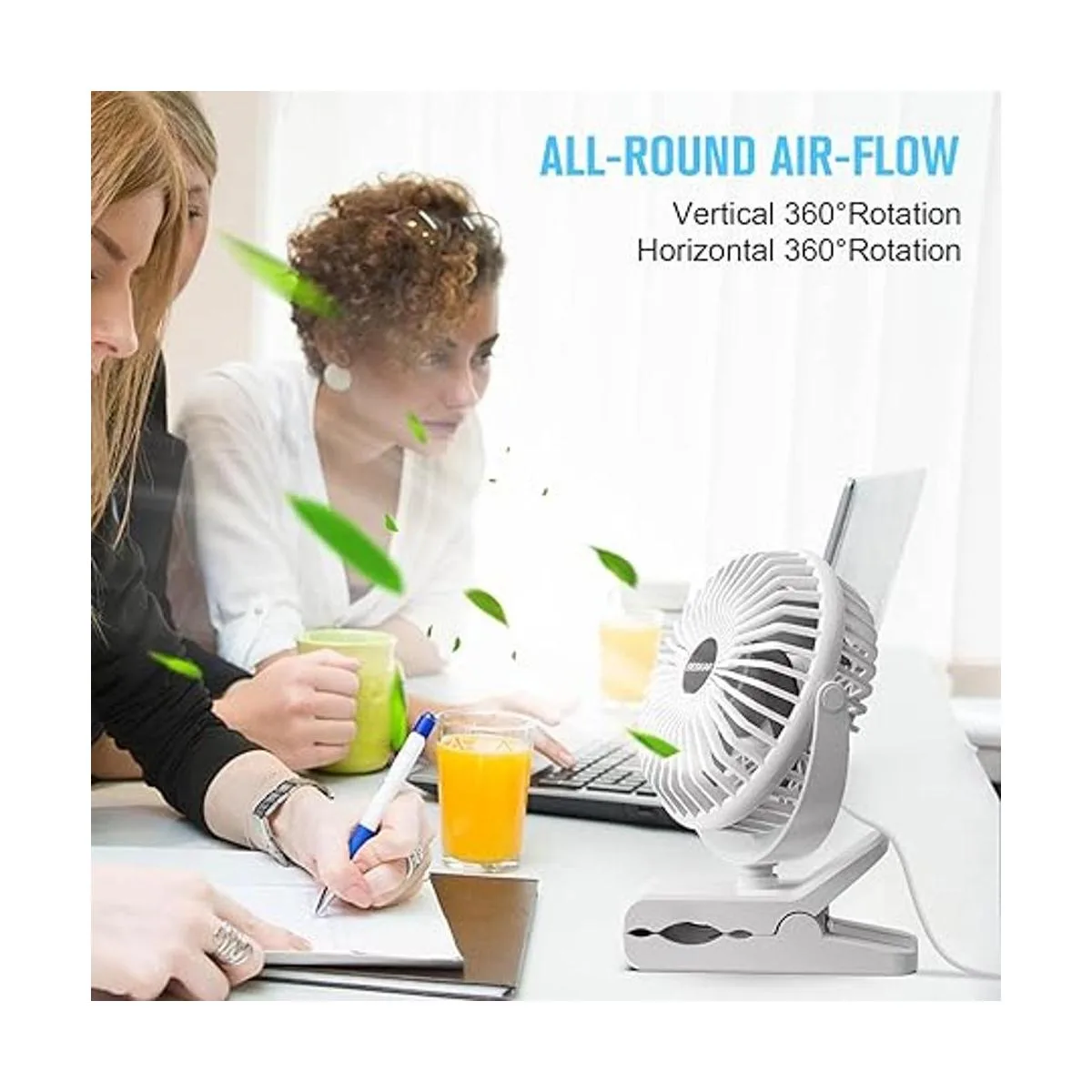 Rotación de 360 grados: ajuste vertical y horizontal de 360 grados, disfruta del aire fresco desde cualquier dirección y te mantiene fresco todo el tiempo.
