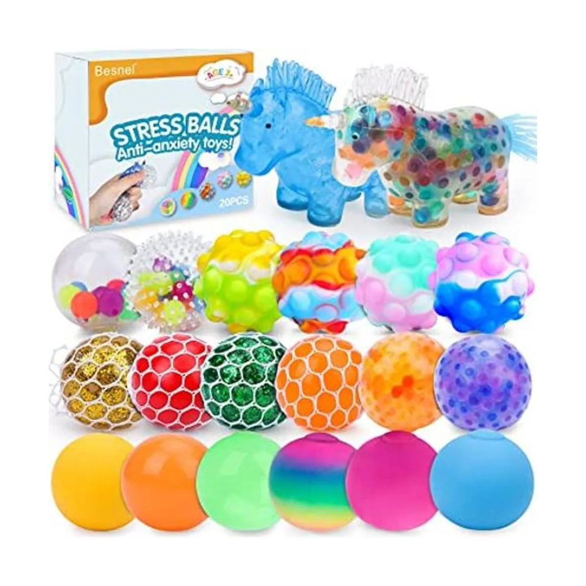 Besnel Juego de bolas sensoriales para aliviar el estrés, 20 juguetes para adultos, niños, autismo, hiperactividad, alivio del estrés, aumenta el entretenimiento