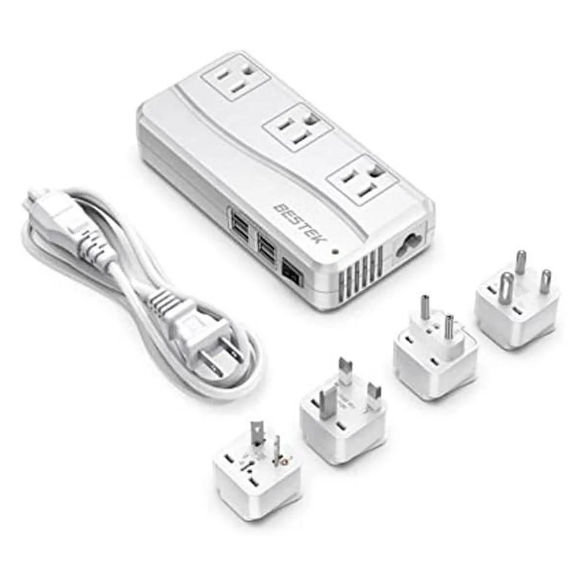 BESTEK Adaptador universal de viaje, adaptador de enchufe mundial de 110220 V a 110 V con carga USB de 6 A de 4 puertos de 3 enchufes de CA y adaptador de salida internacional de EUUKAUUSin blanco